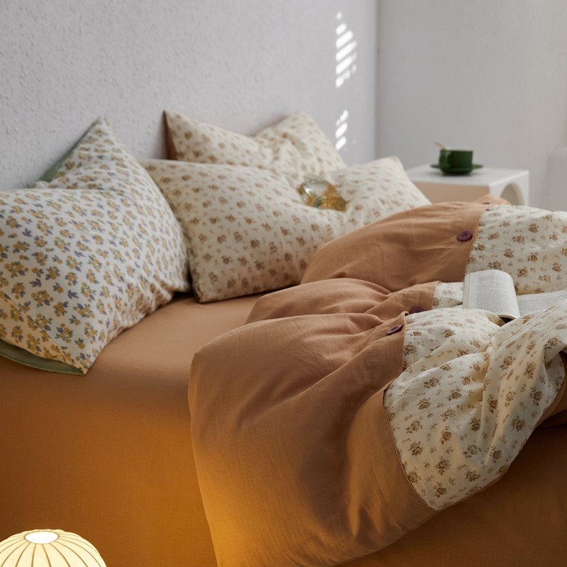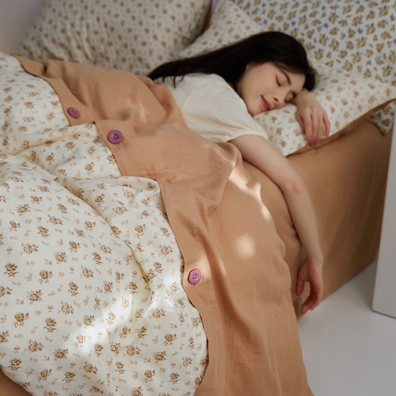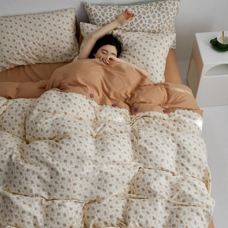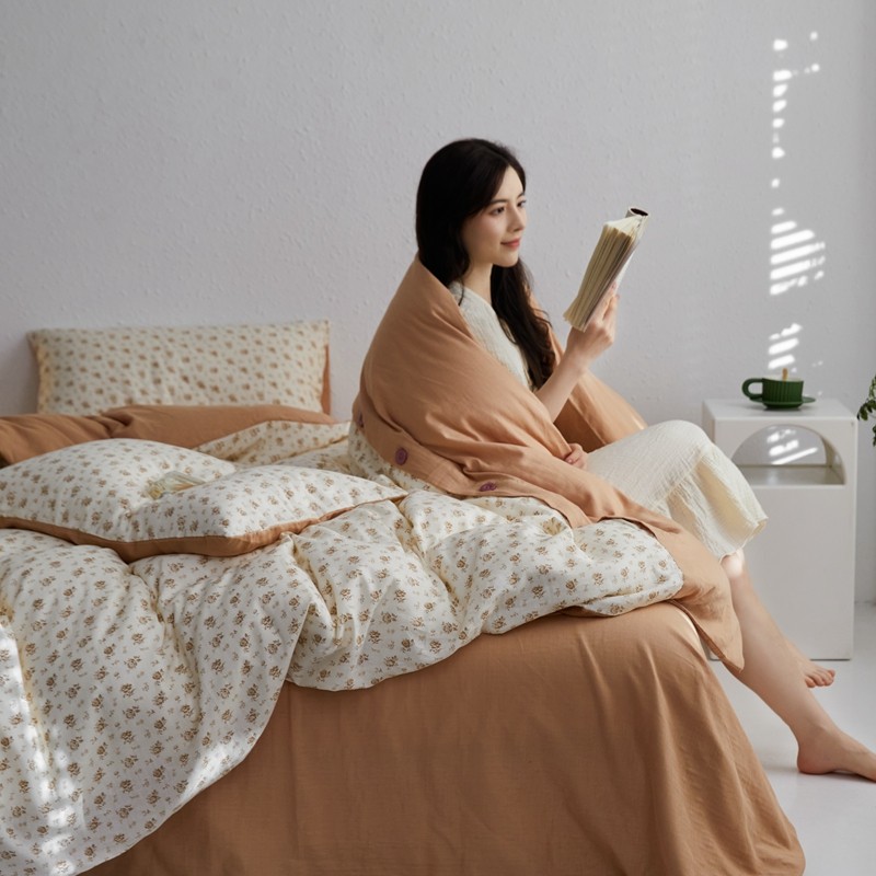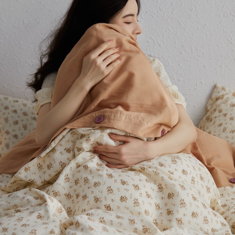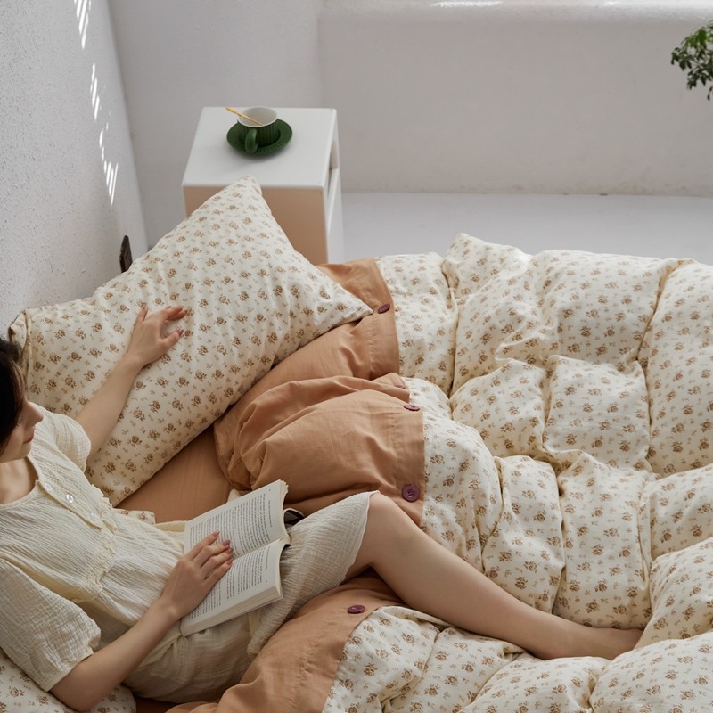 时年 2023新款全棉母婴级有氧双层纱纽扣工艺款四件套-场景二 小薇