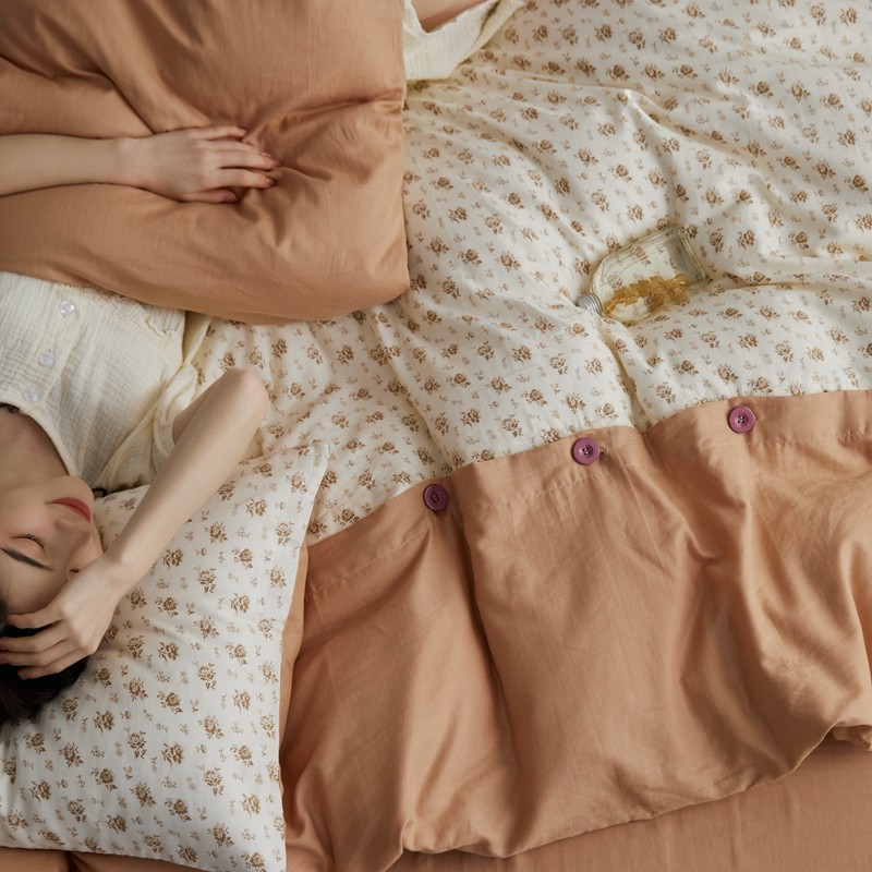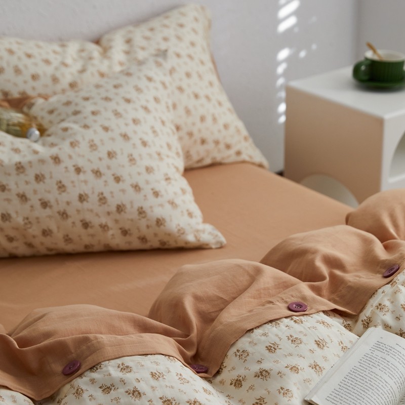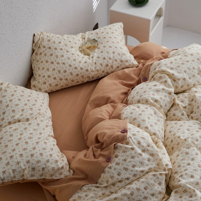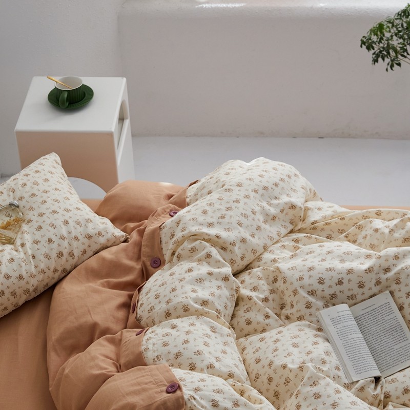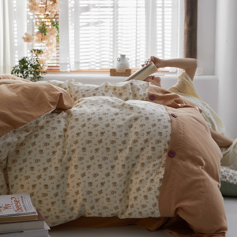 商品名称:时年 2023新款全棉母婴级有氧双层纱纽扣工艺款四件套-场景二 小薇