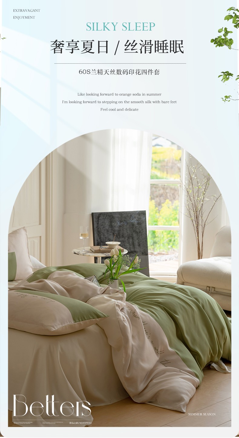 当前位置: 91家纺网 > 商品网购 > 床品套件 > 四件套 > 莱赛尔四件套 > 沐晴 2023新款数码印花60S兰精天丝纯色简约轻奢四件套 抹茶绿