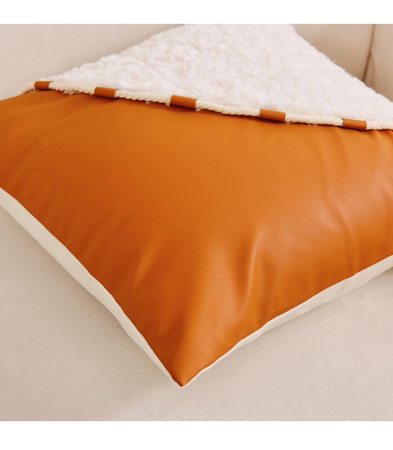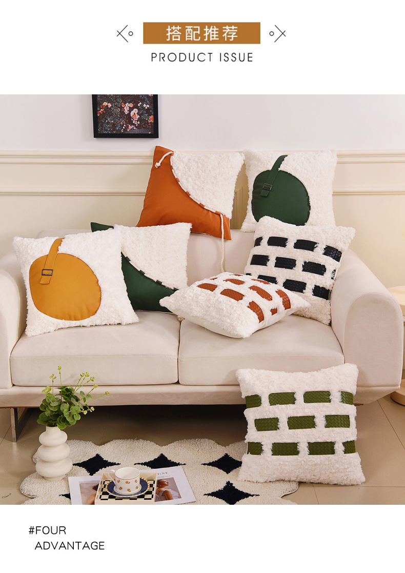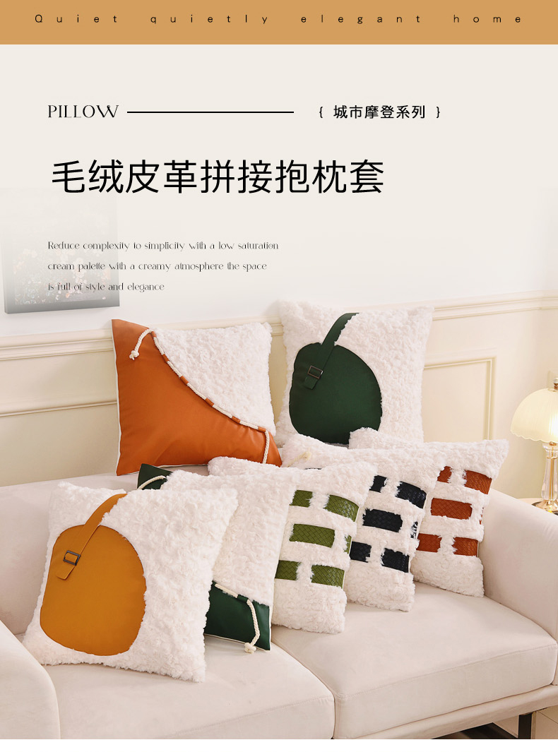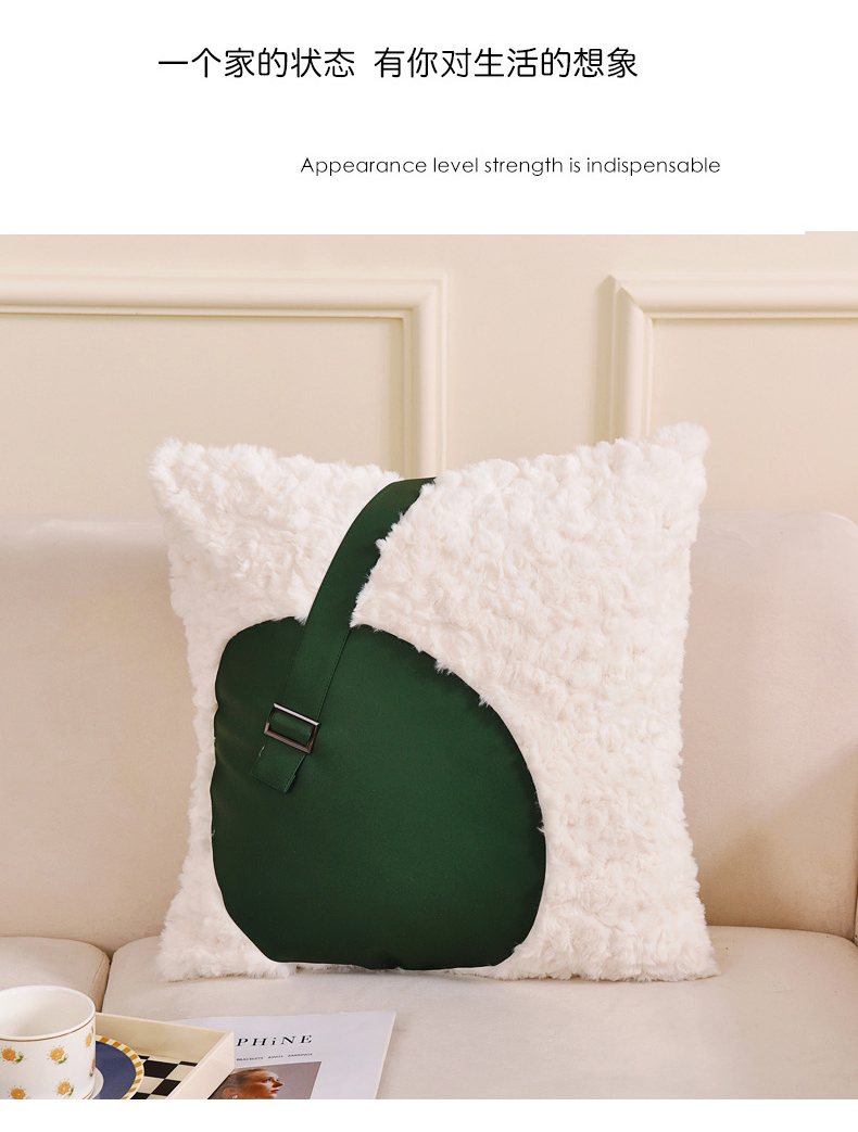 商品名称:恋佳居 2023新款抱枕套系列 兔毛皮扣墨绿