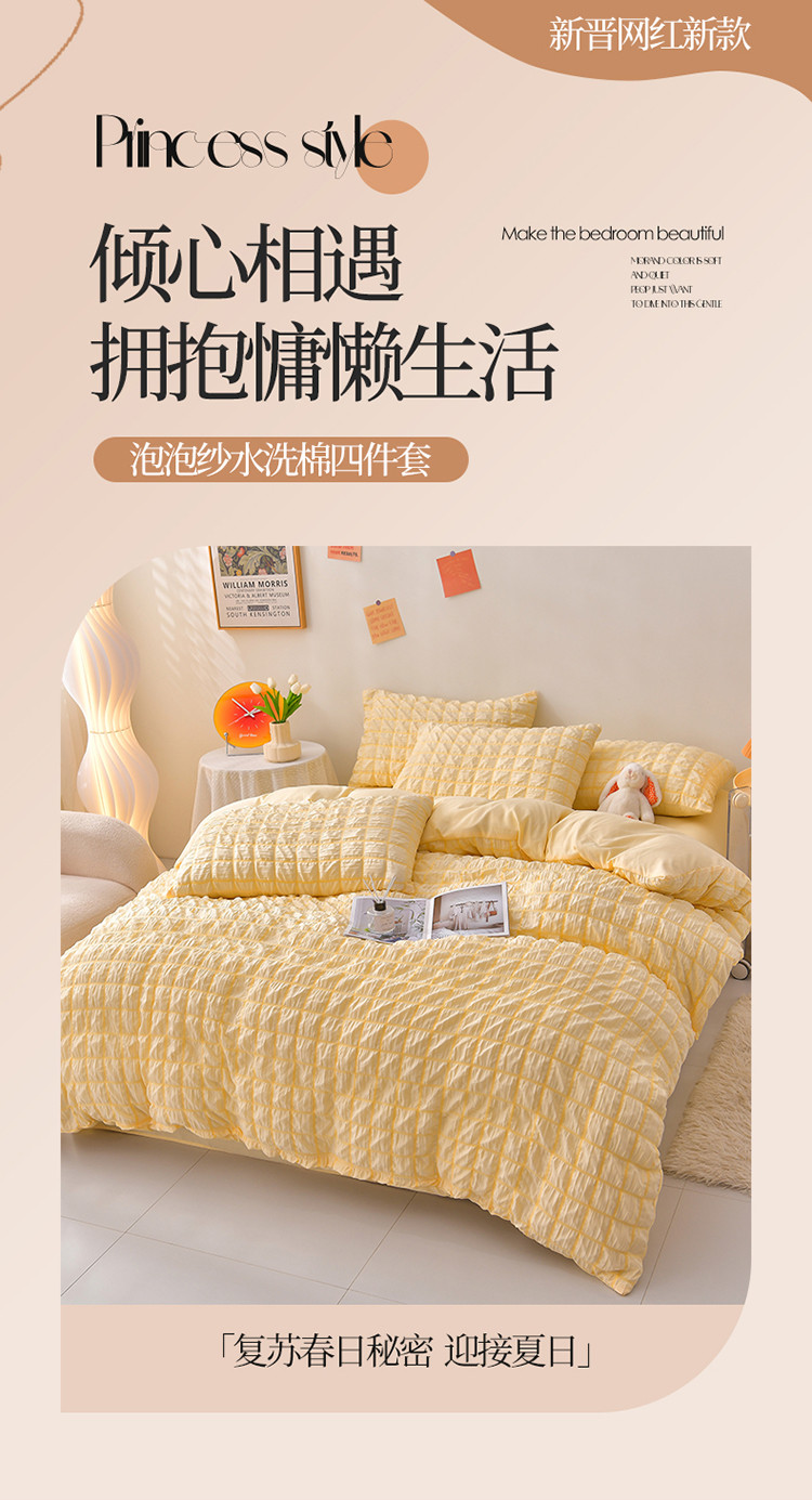 (总)梦莱情 2023新款泡泡纱水洗棉四件套