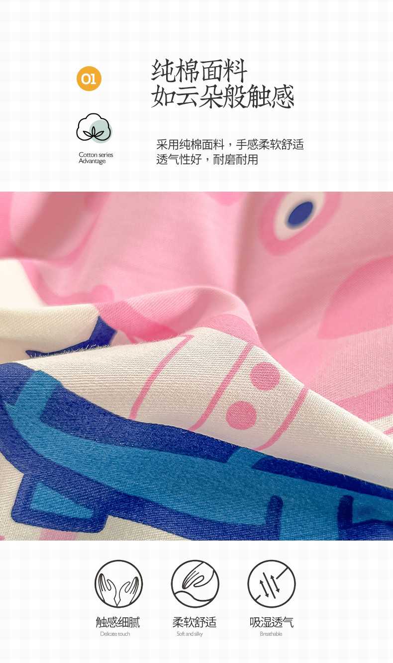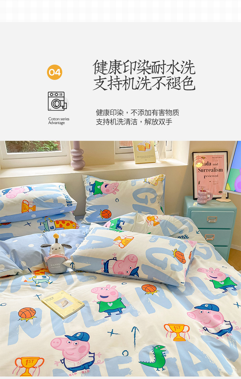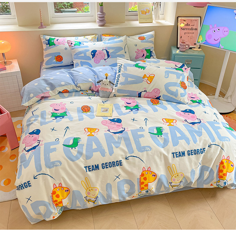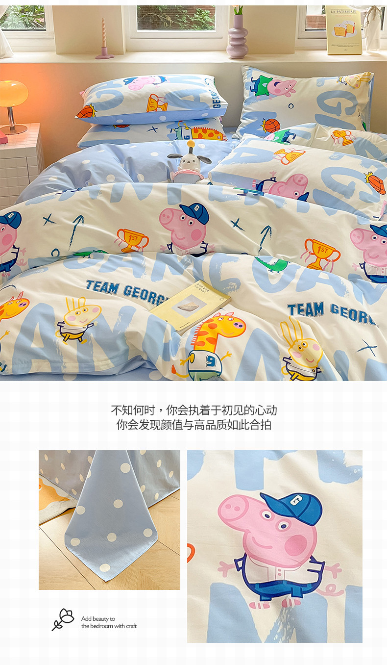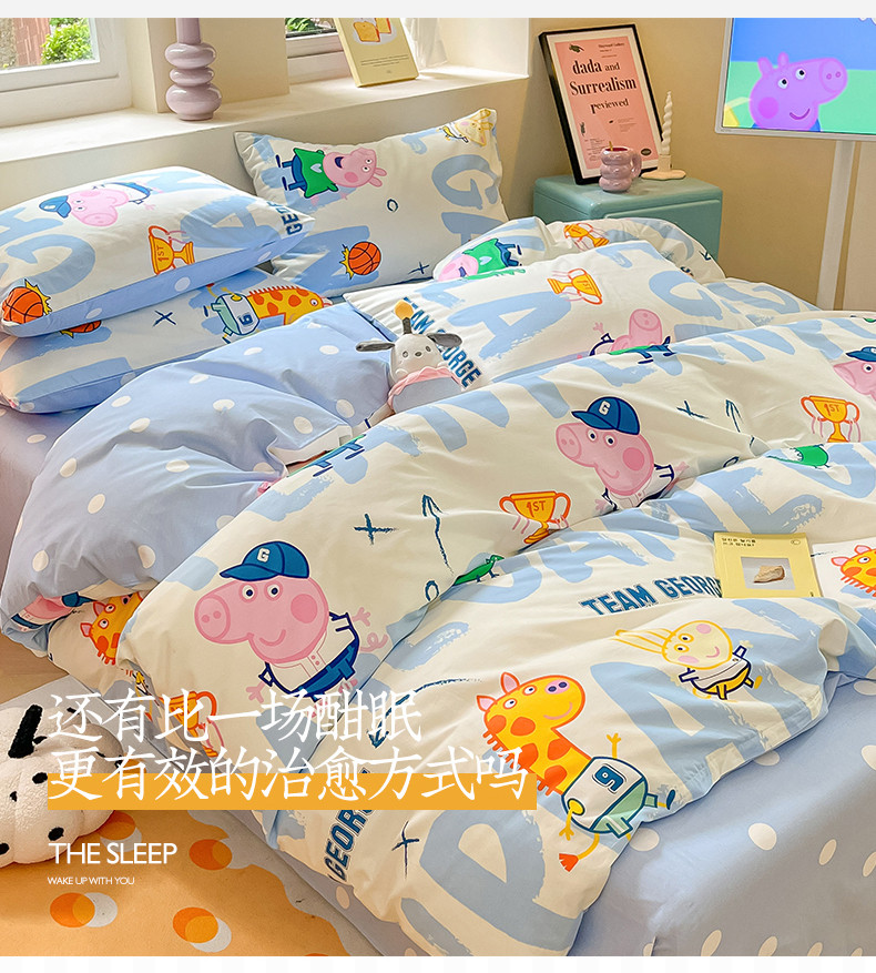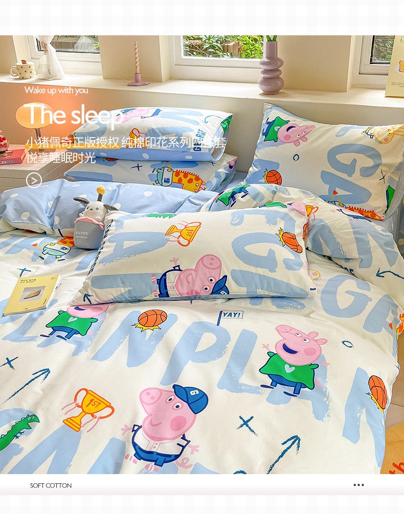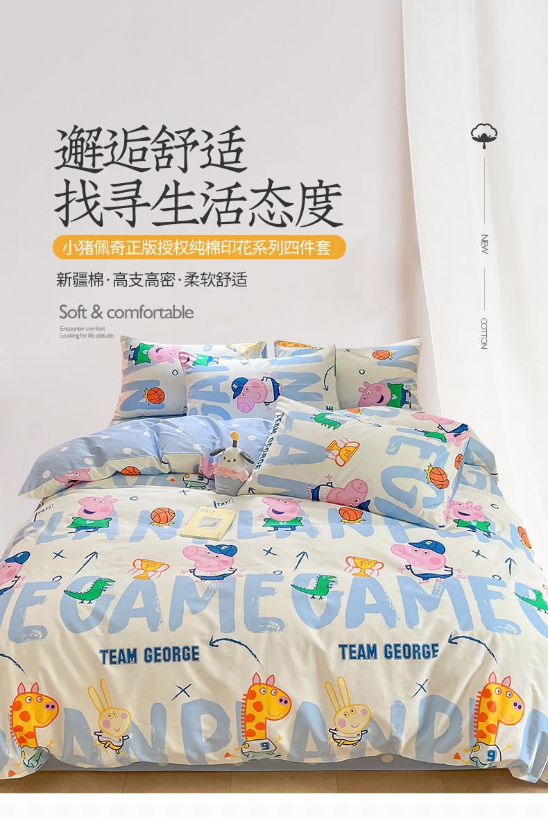 商品名称:桃子家居 2023新款小猪佩奇正版授权纯棉印花系列四件套 小猪佩奇-运动佩奇