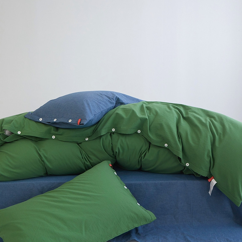 当前位置: 91家纺网 > 商品网购 > 床品套件 > 四件套 > 水洗棉四件套 > 安莱生活水洗棉全棉色经色纬高支高密纽扣款工艺混搭拼色四件套(系列二) 军绿+深蓝(军绿深蓝)