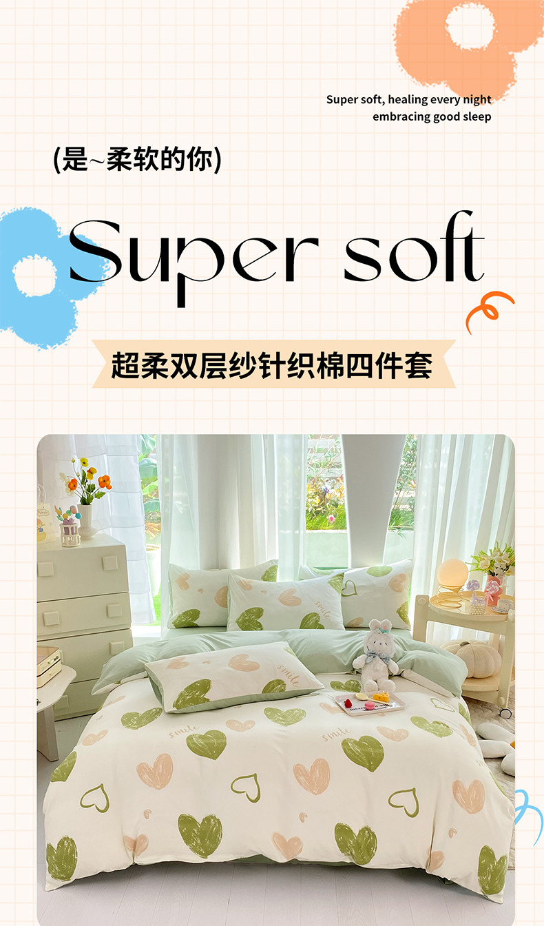 当前位置: 91家纺网 > 商品网购 > 床品套件 > 四件套 > 水洗棉四件套 > 慕尚家纺 2025新款A类超柔双层水洗四件套 涂鸦爱心