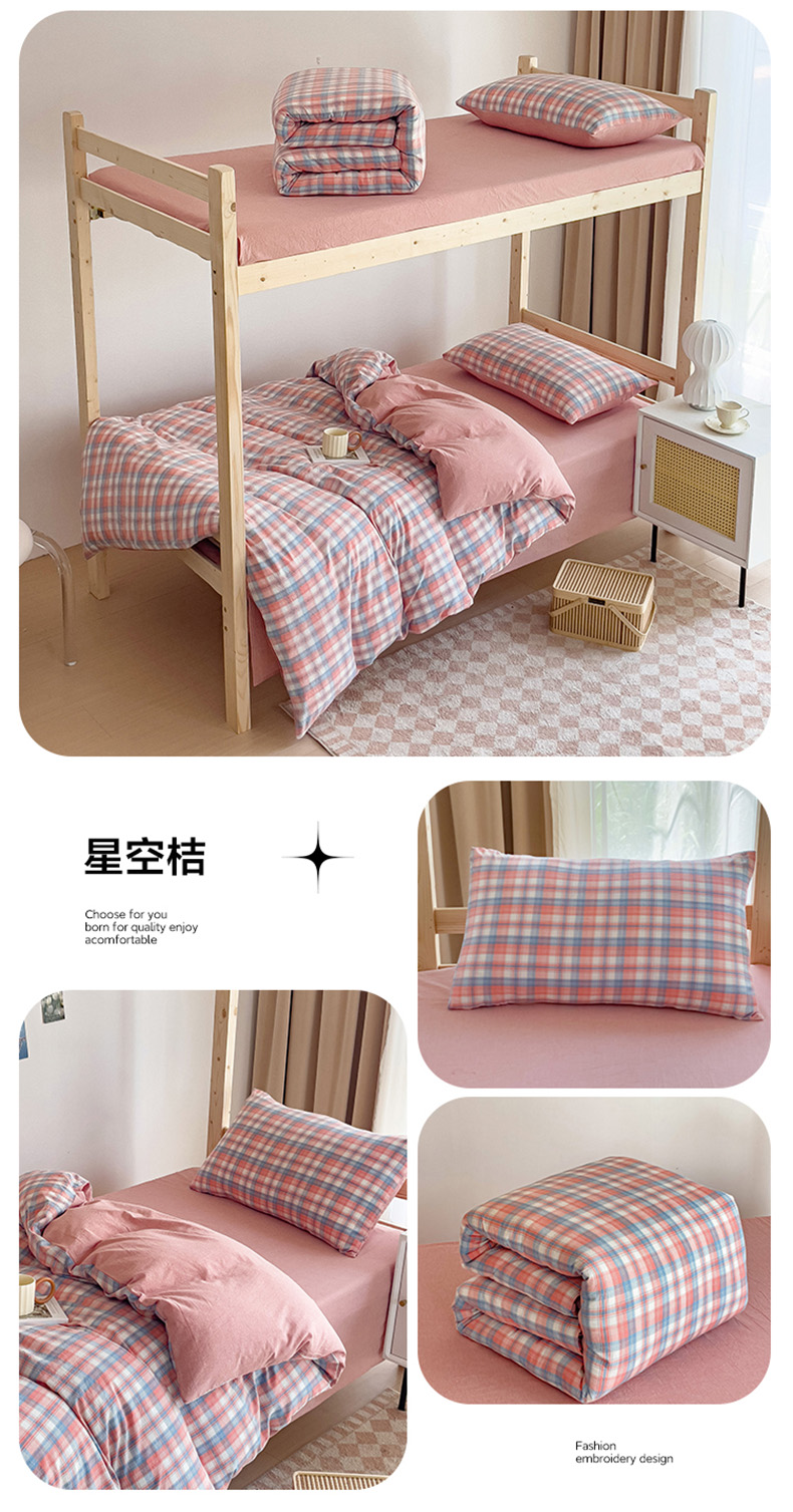 (总)全棉色织水洗棉四件套纯棉简约格子被套床单宿舍学生三件套,贝拉粉,冰激凌格,简格兰,简兮兰,简兮绿,绿灰格,星空桔,印象黄