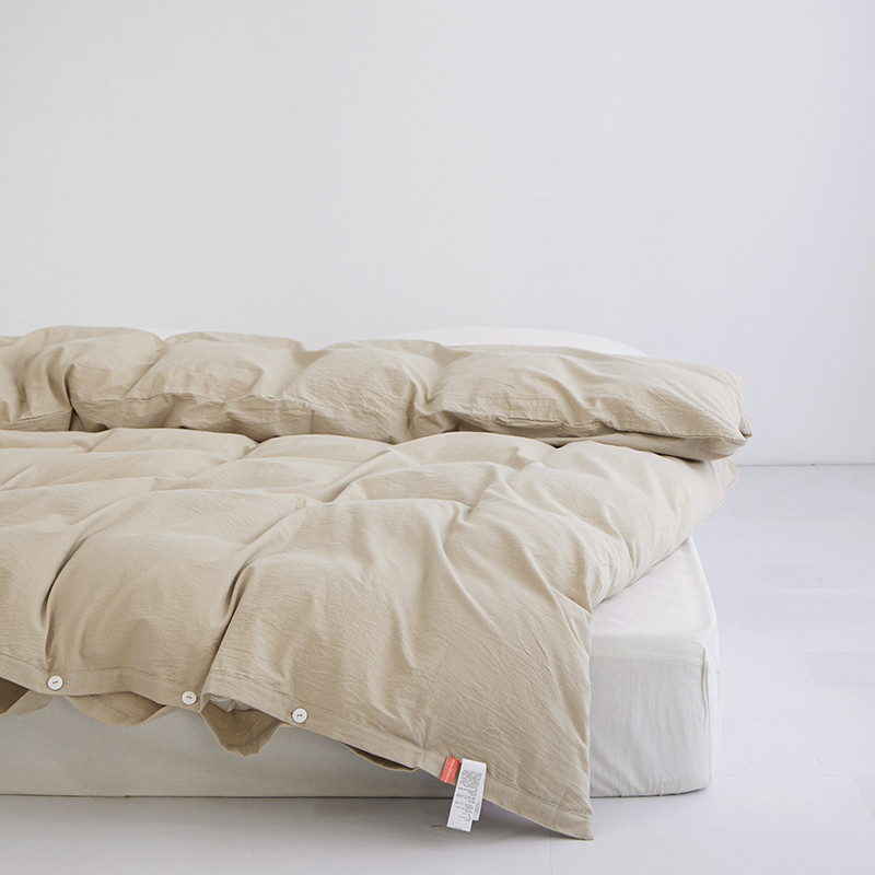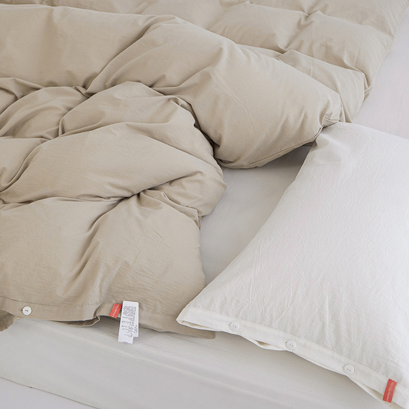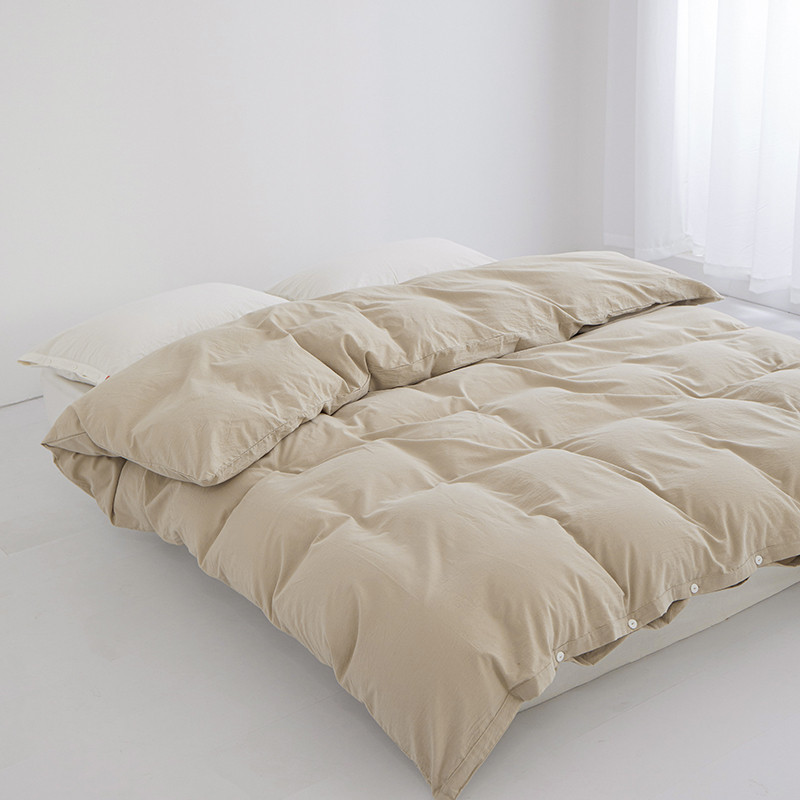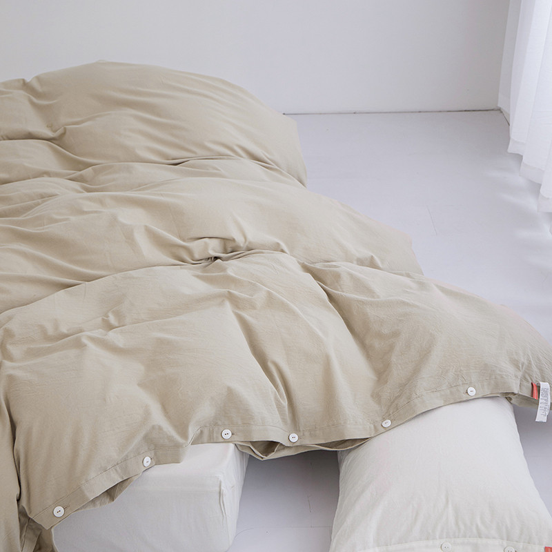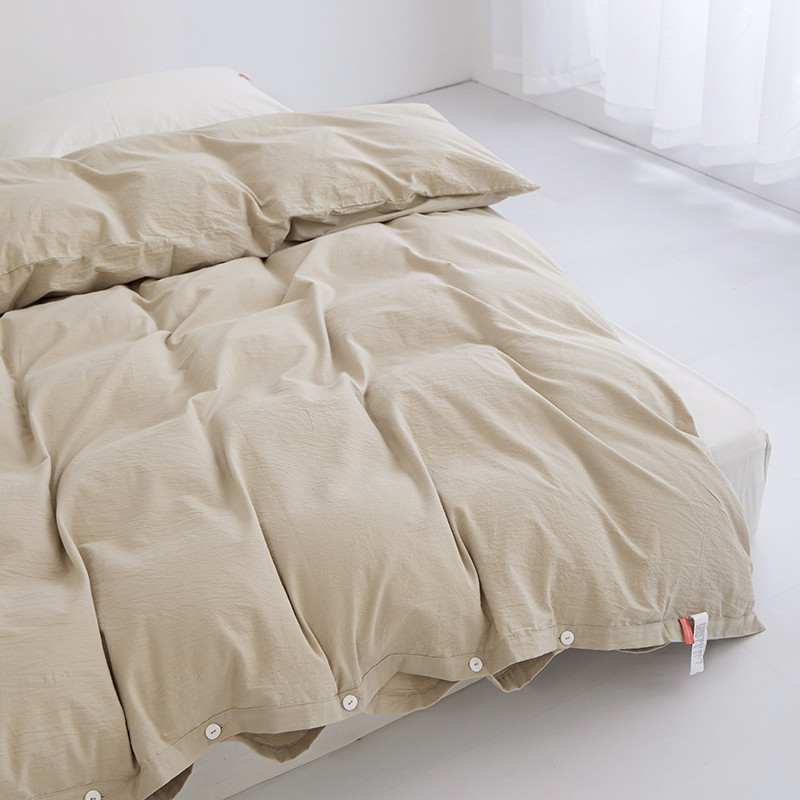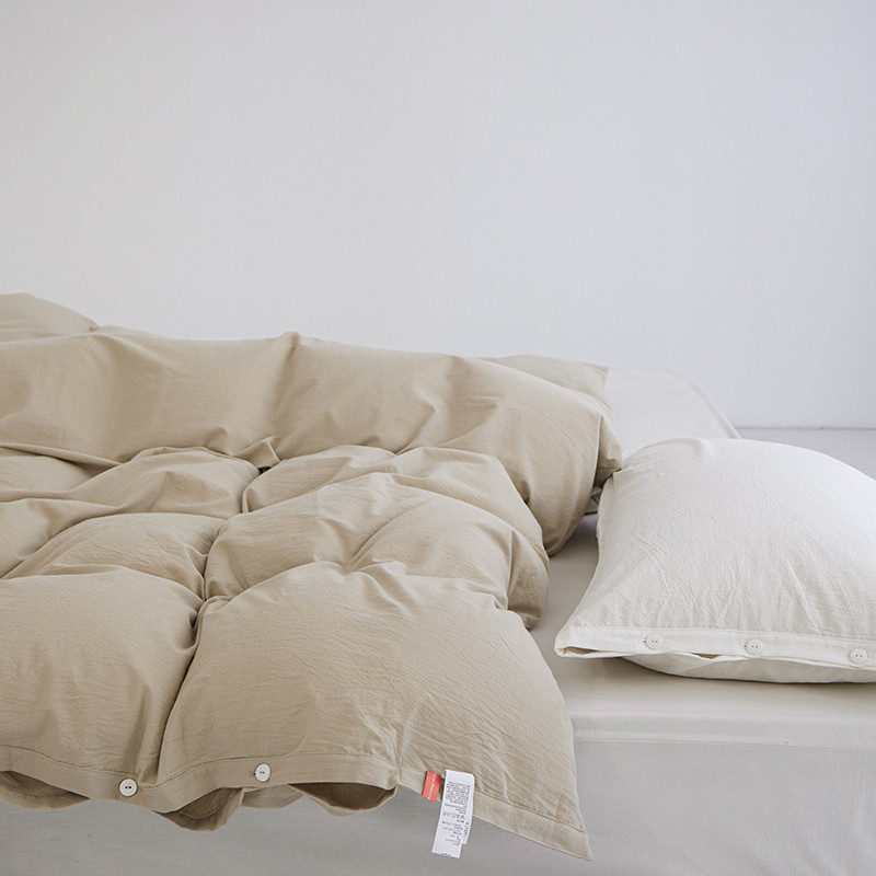 商品名称:安莱生活 2023新款水洗棉全棉色织高支高密纽扣款工艺单品被套 米驼