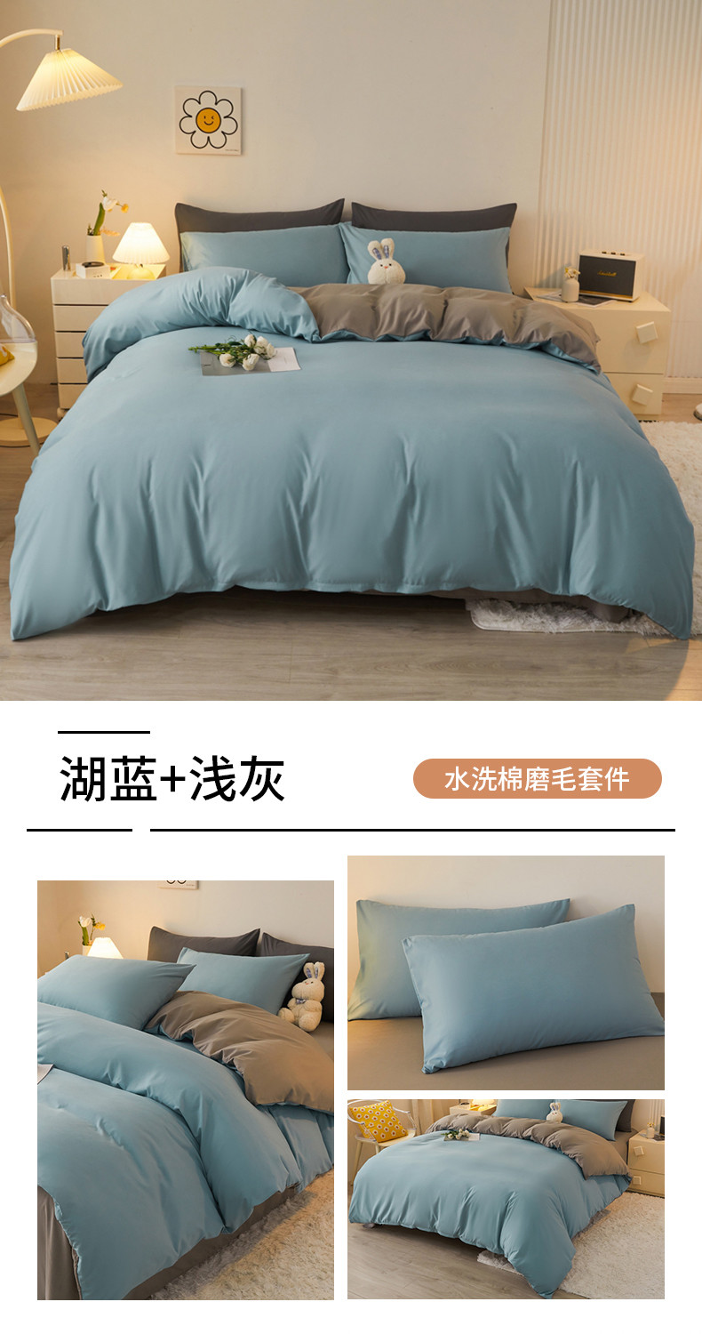 当前位置: 91家纺网 > 商品网购 > 床品套件 > 四件套 > 水洗棉四件套 > 邵依 2025新款水洗棉磨毛非全棉纯棉纯色素色四件套 湖蓝+浅灰
