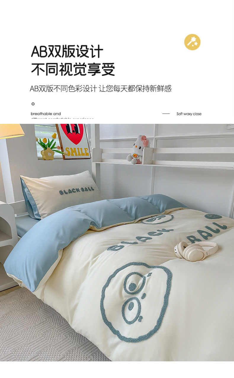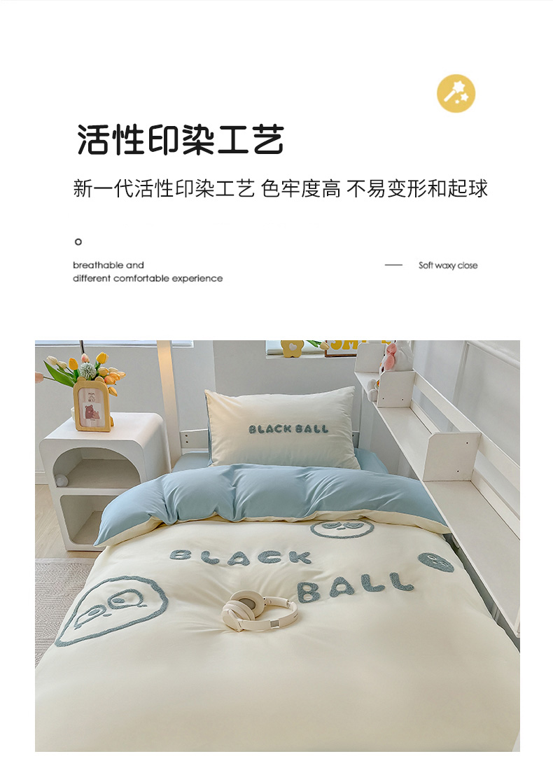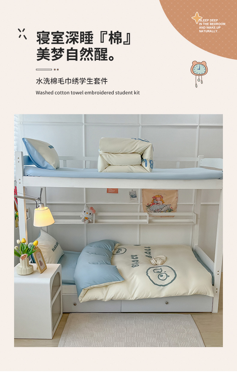 (总)眠帛家居 2025新款A类水洗棉卡通毛巾绣单床笠,海宝,小八,小星,小熊-奶咖,小熊-天空蓝,蟹宝,鸭鸭