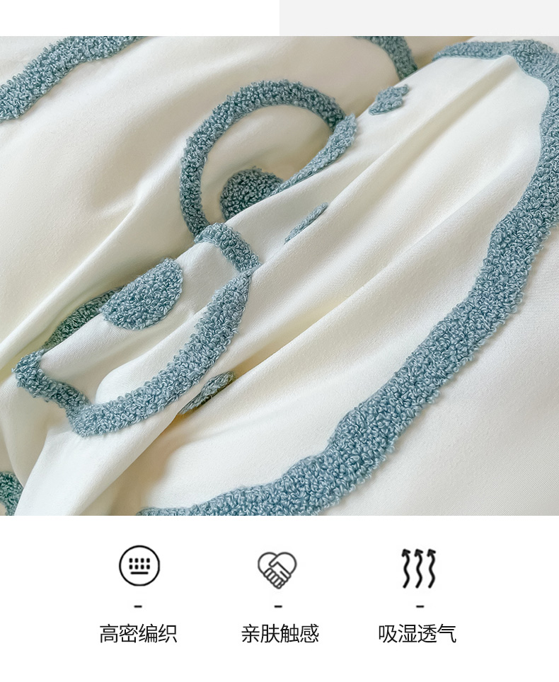 眠帛家居 2020全棉绣花小清新四件套 伊凌浅石蓝,伊凌浅石蓝