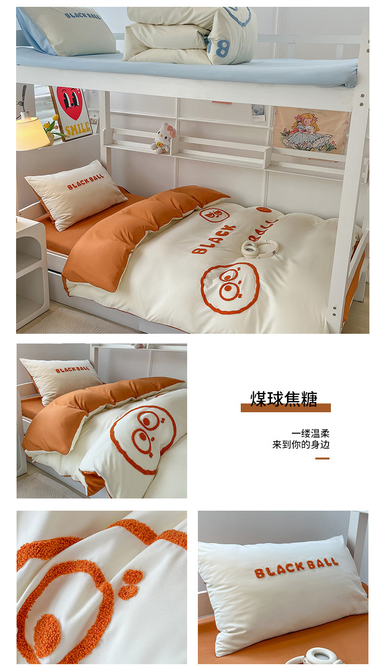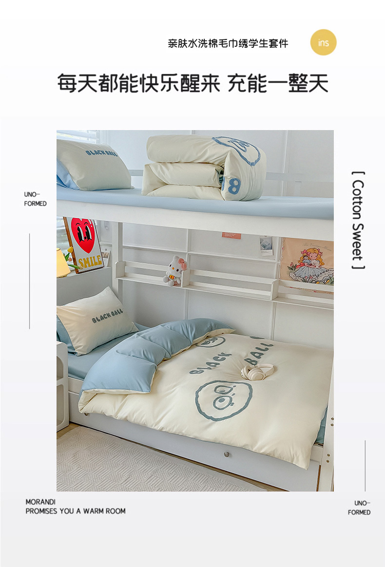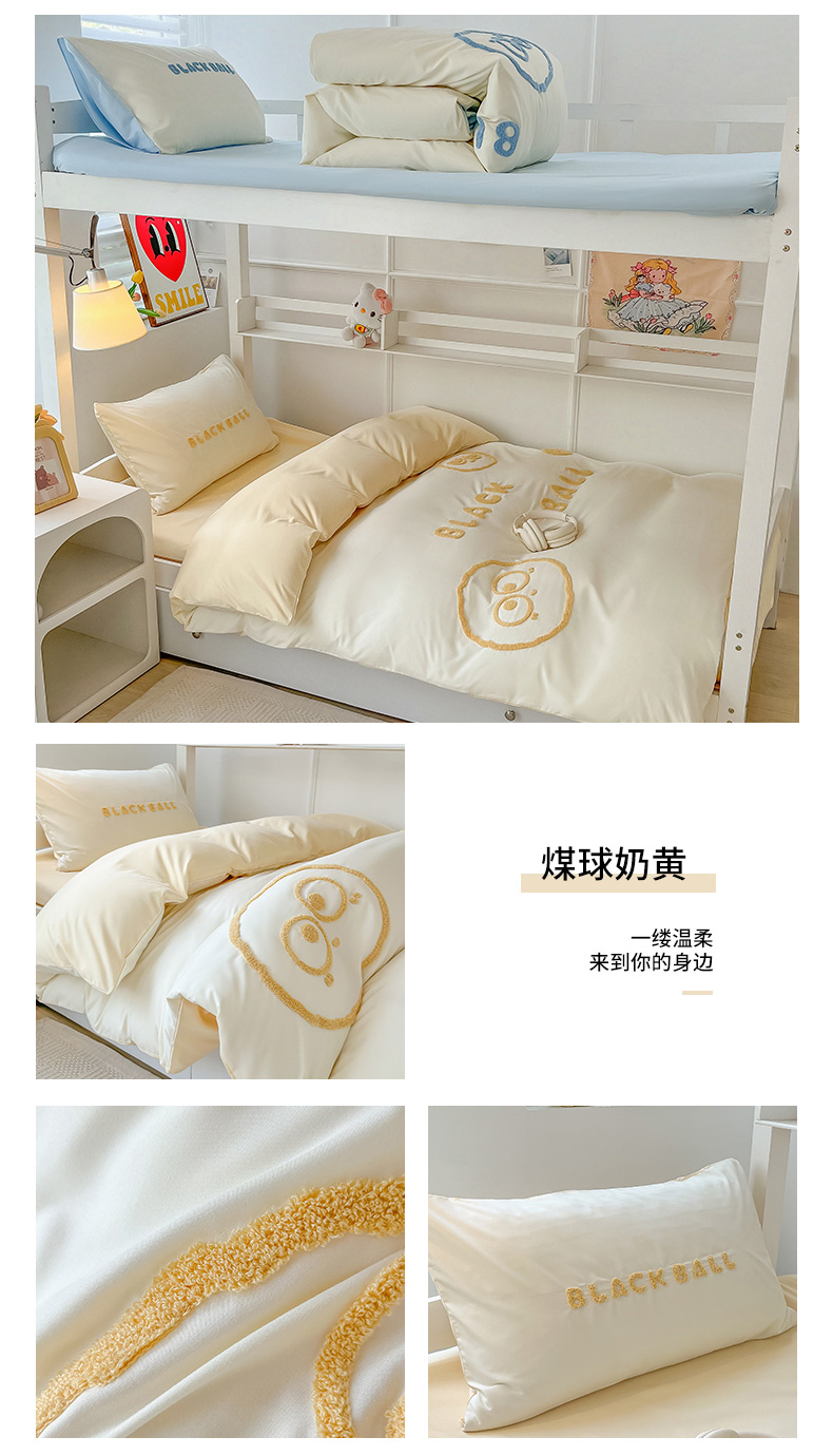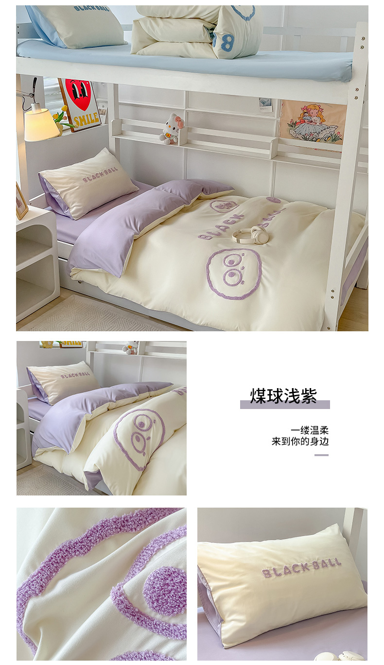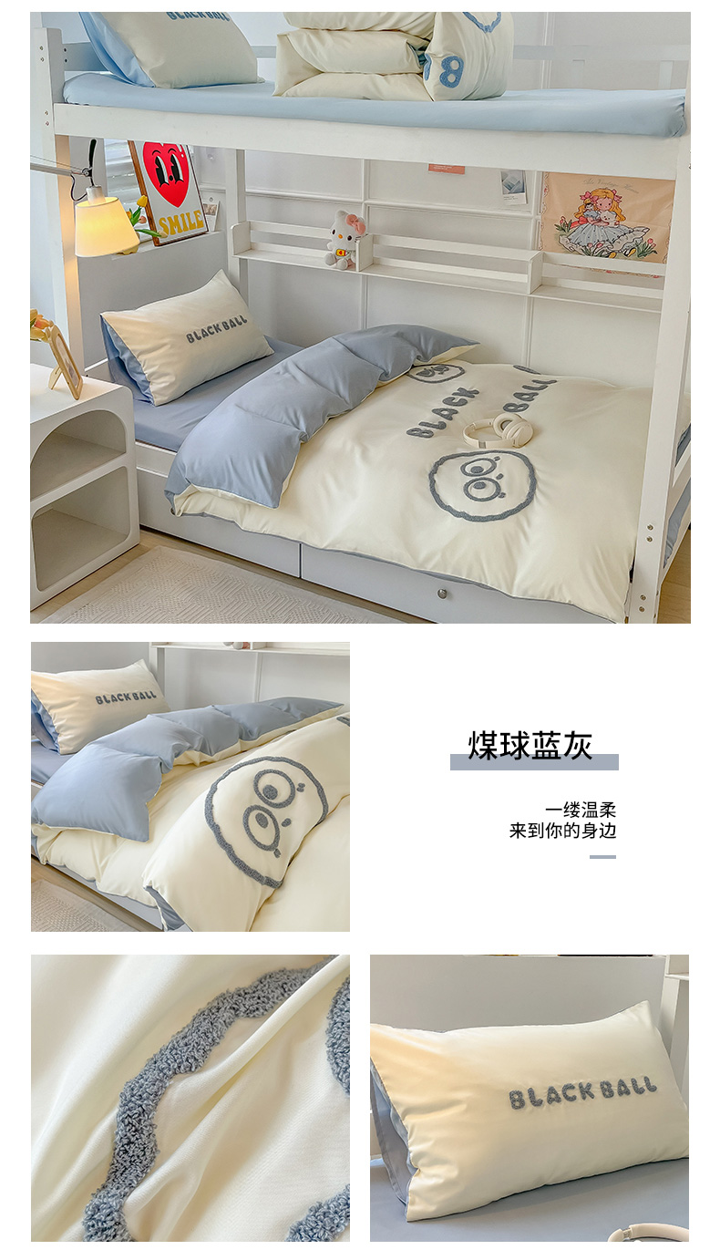 (总)眠帛 2023新款水洗棉毛巾绣煤球系列学生三件套六件套