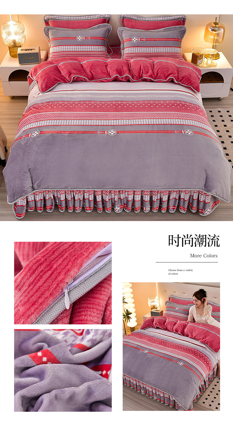 贝诗梦 2022新款加厚230克9斤牛奶绒金貂绒四件套时尚潮流