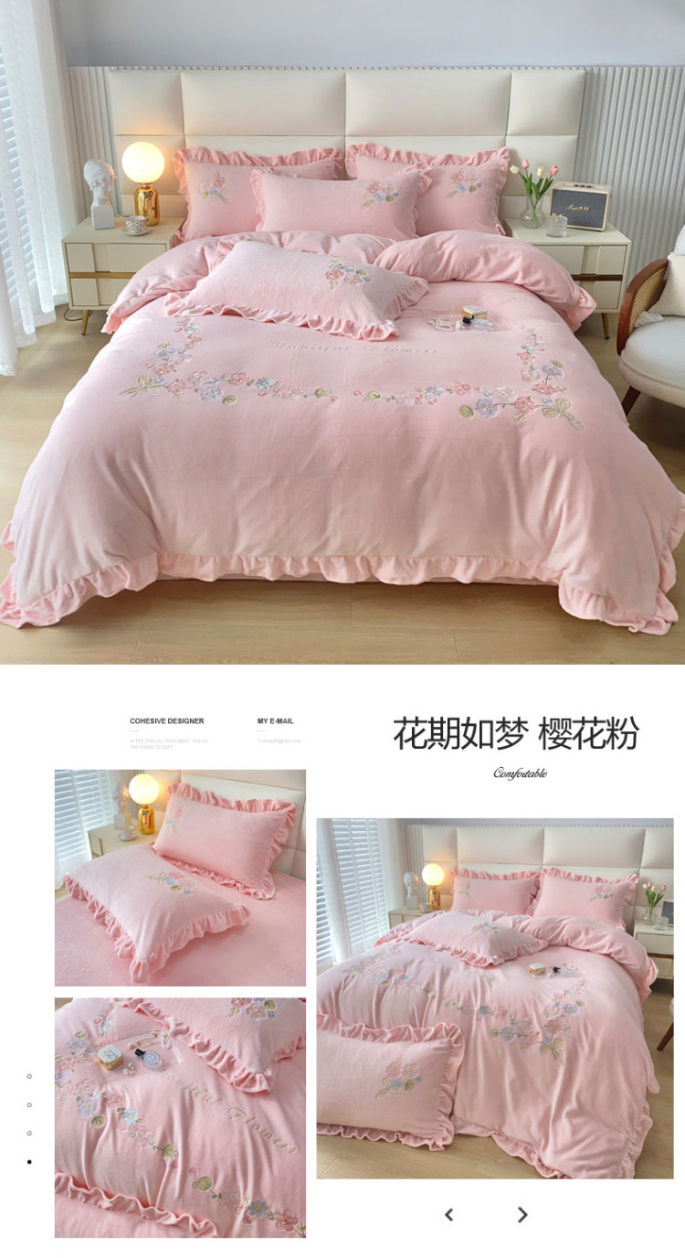 (总)星尚家纺 2024新款全消光230g牛奶绒刺绣保暖四件套-花漾,晨雾绿,豆沙粉,樱花粉