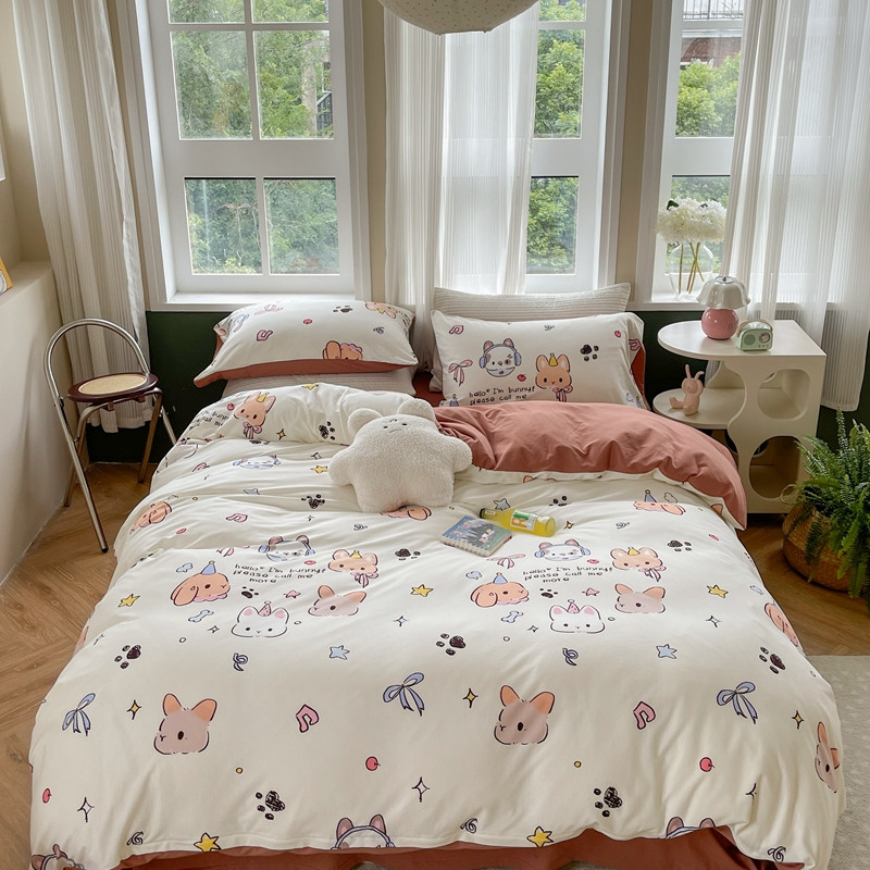 (总)柚子YOUTH 2025新款加厚牛奶绒卡通毛巾绣四件套-印加绣送同款毛毯,蛋糕小狗,公主猫,头套猫,兔兔花园,小伙伴,雪纳瑞