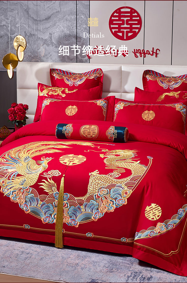 (总)甜咪咪婚庆 2025新品长绒棉全棉大龙凤刺绣婚庆结婚四件套多件套 小红书推荐,龙凤吉祥,龙凤情缘,游龙戏凤