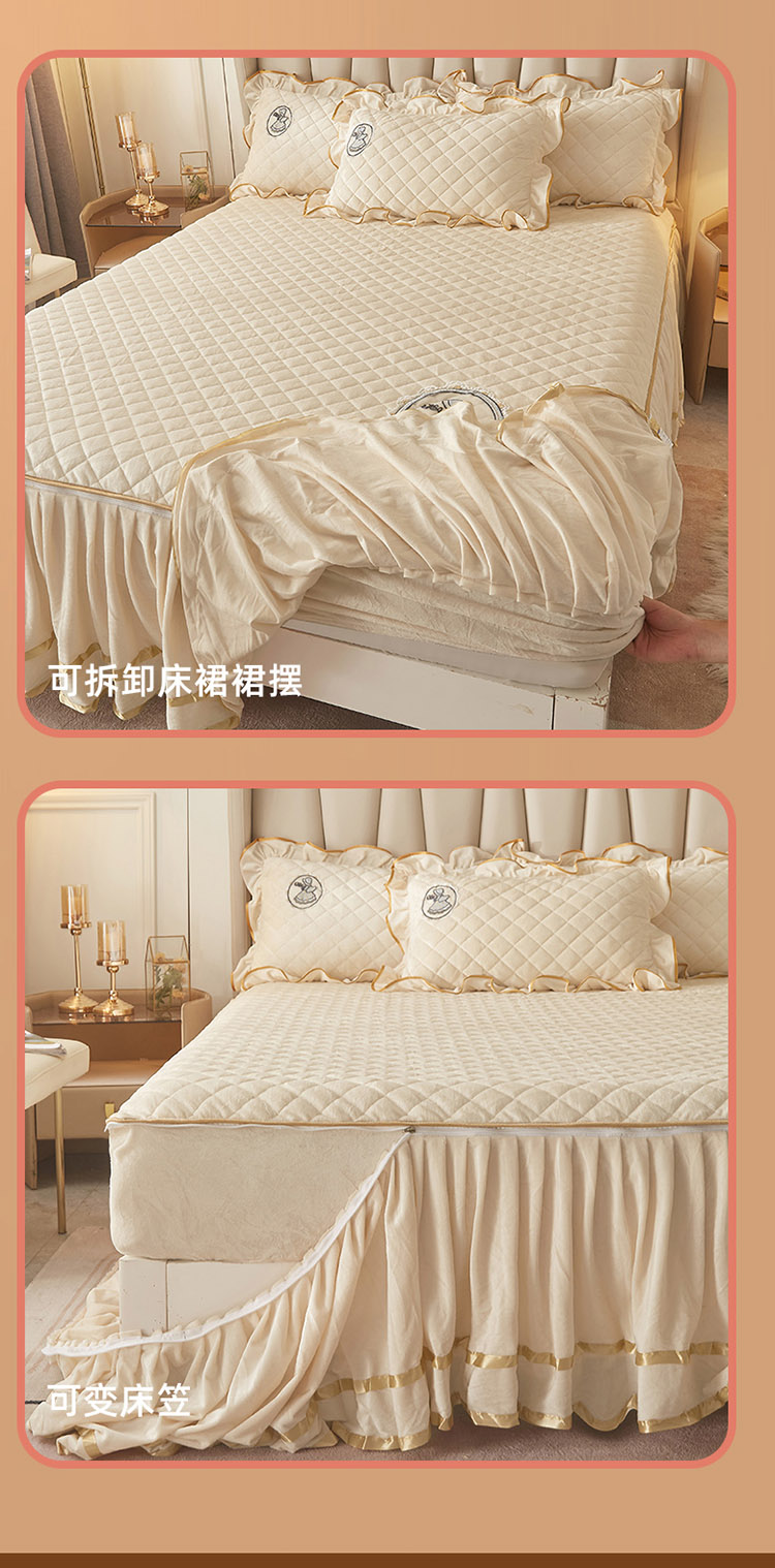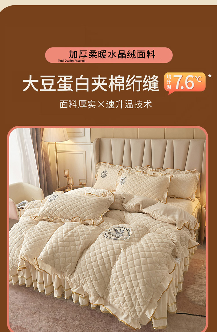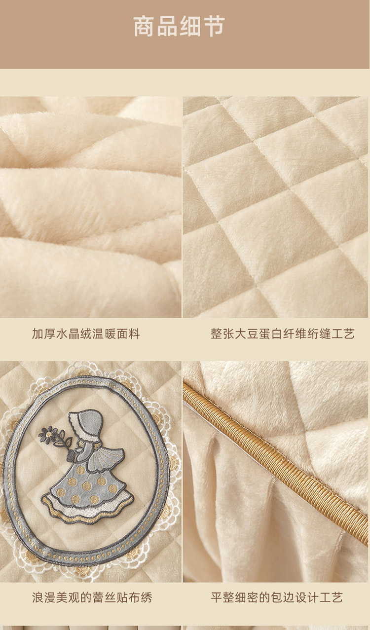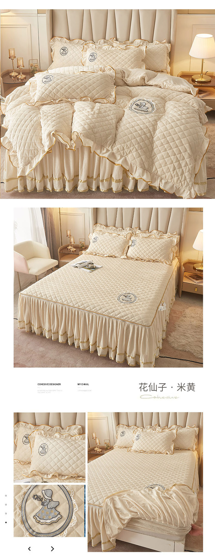 当前位置: 91家纺网 > 商品网购 > 床品套件 > 四件套 > 水晶绒四件套 > 恋尚 2023新款水晶绒大豆蛋白棉床笠床裙可脱卸四件套花仙子 花仙子米黄