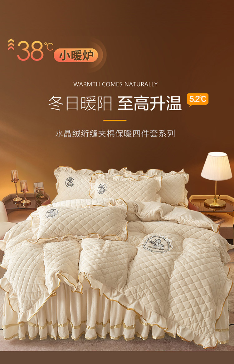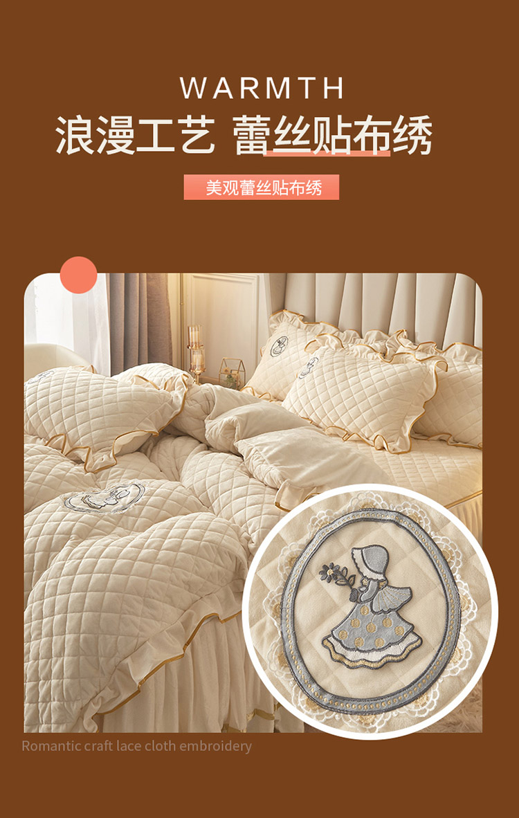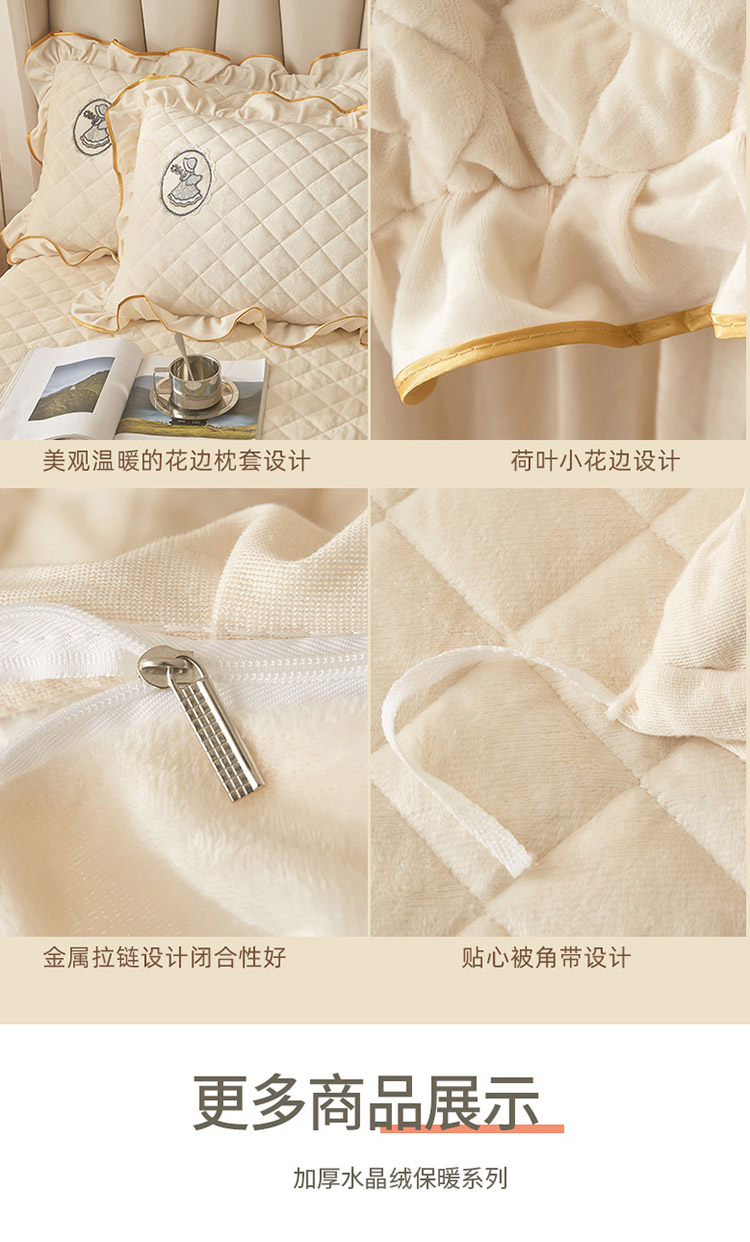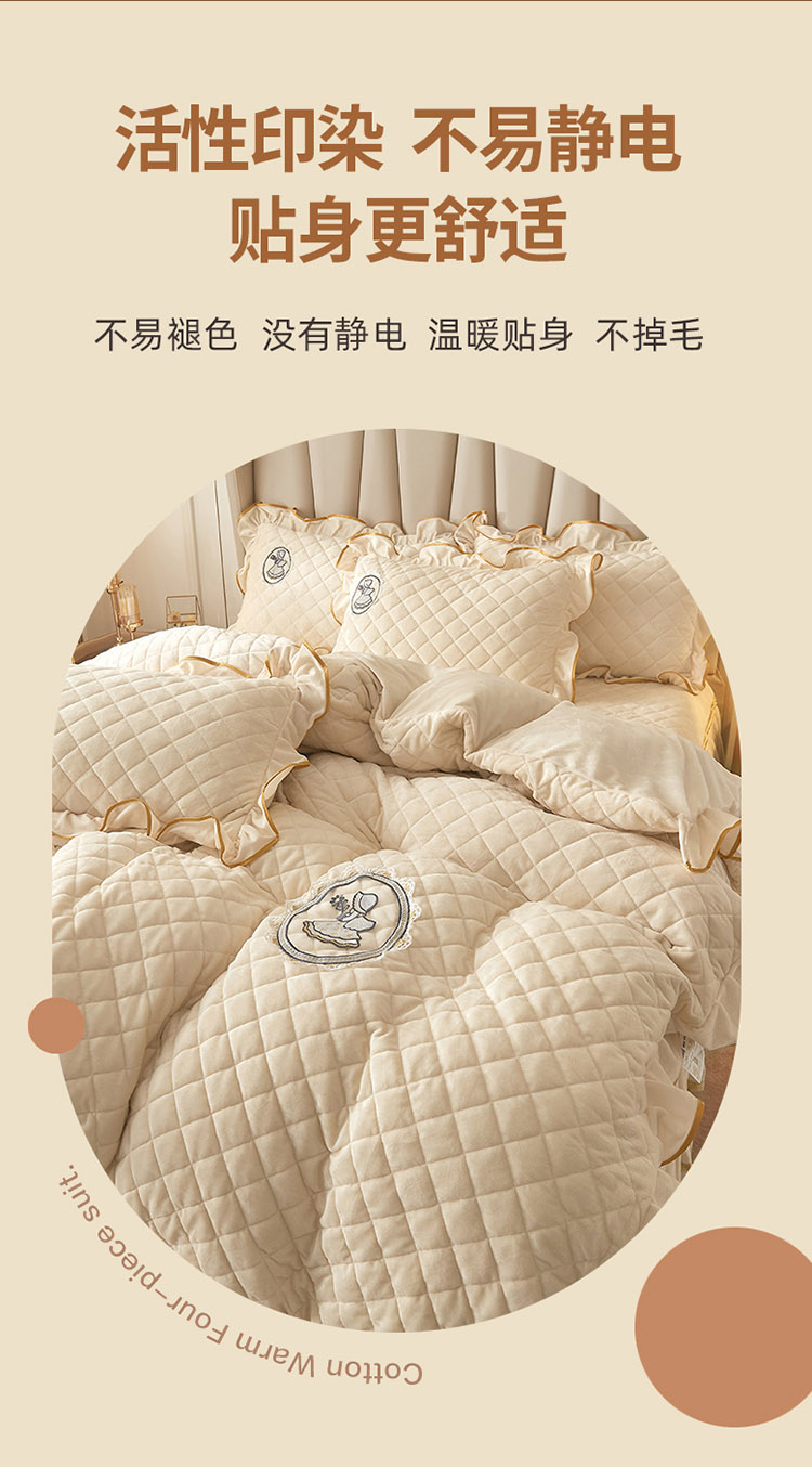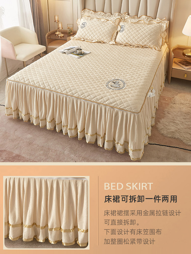 当前位置: 91家纺网 > 商品网购 > 床品套件 > 四件套 > 水晶绒四件套 > 恋尚 2023新款水晶绒大豆蛋白棉床笠床裙可脱卸四件套花仙子 花仙子米黄