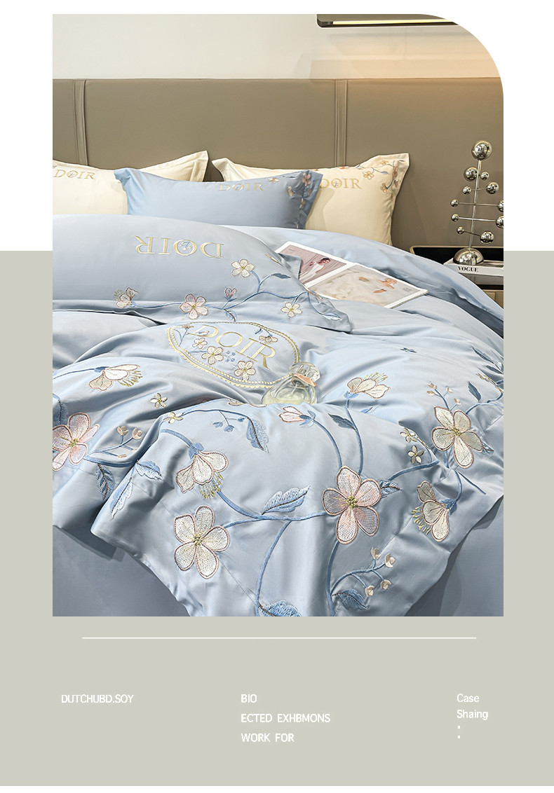 丞音 高档礼盒2024款长绒棉轻奢纯棉花卉刺绣四件套 香榭丽-秋波蓝