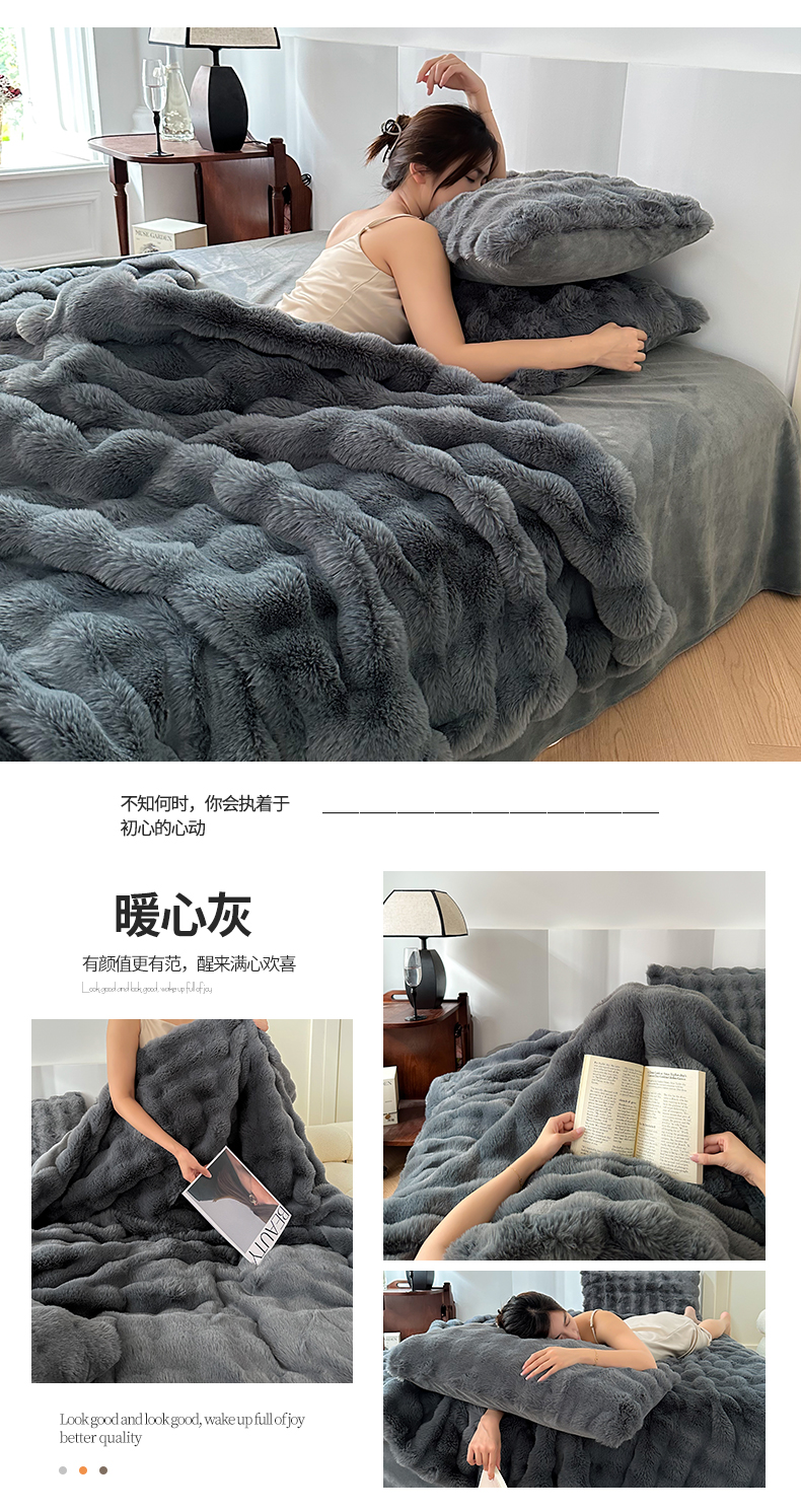 当前位置: 91家纺网 > 商品网购 > 床品套件 > 四件套 > 牛奶绒四件套 > 满座 2025新款高克重托卡斯仿皮草 大泡泡兔毛四件套兔兔绒牛奶绒四件套 暖心灰