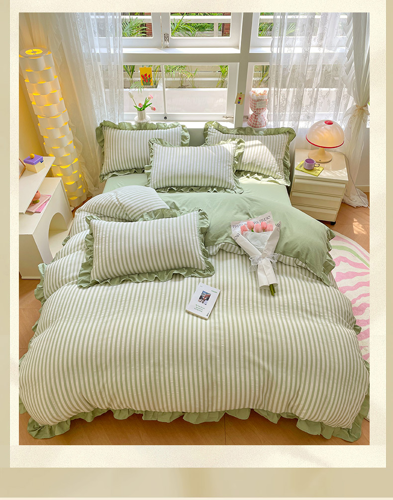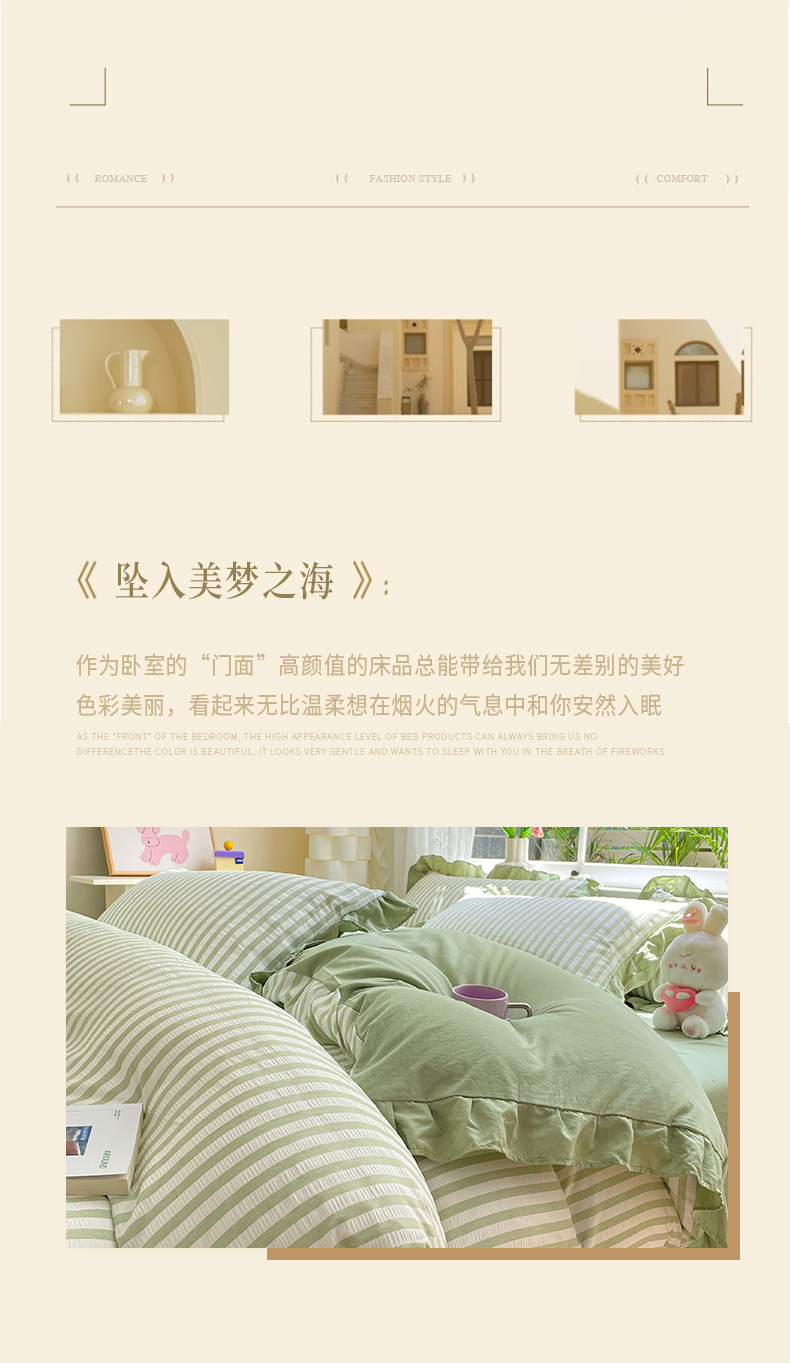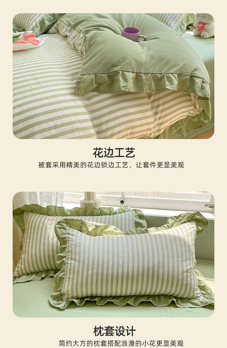 商品名称:ab家纺 2023新品竖条纹泡泡纱四件套 泡泡纱- 草绿