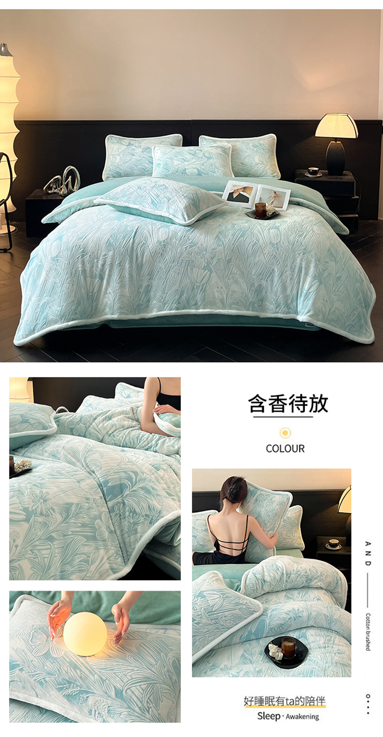 (总)诺梵 高端2025雕花绒四件套牛奶烂花绒大包边被套_控价标准高于149,加大高于159