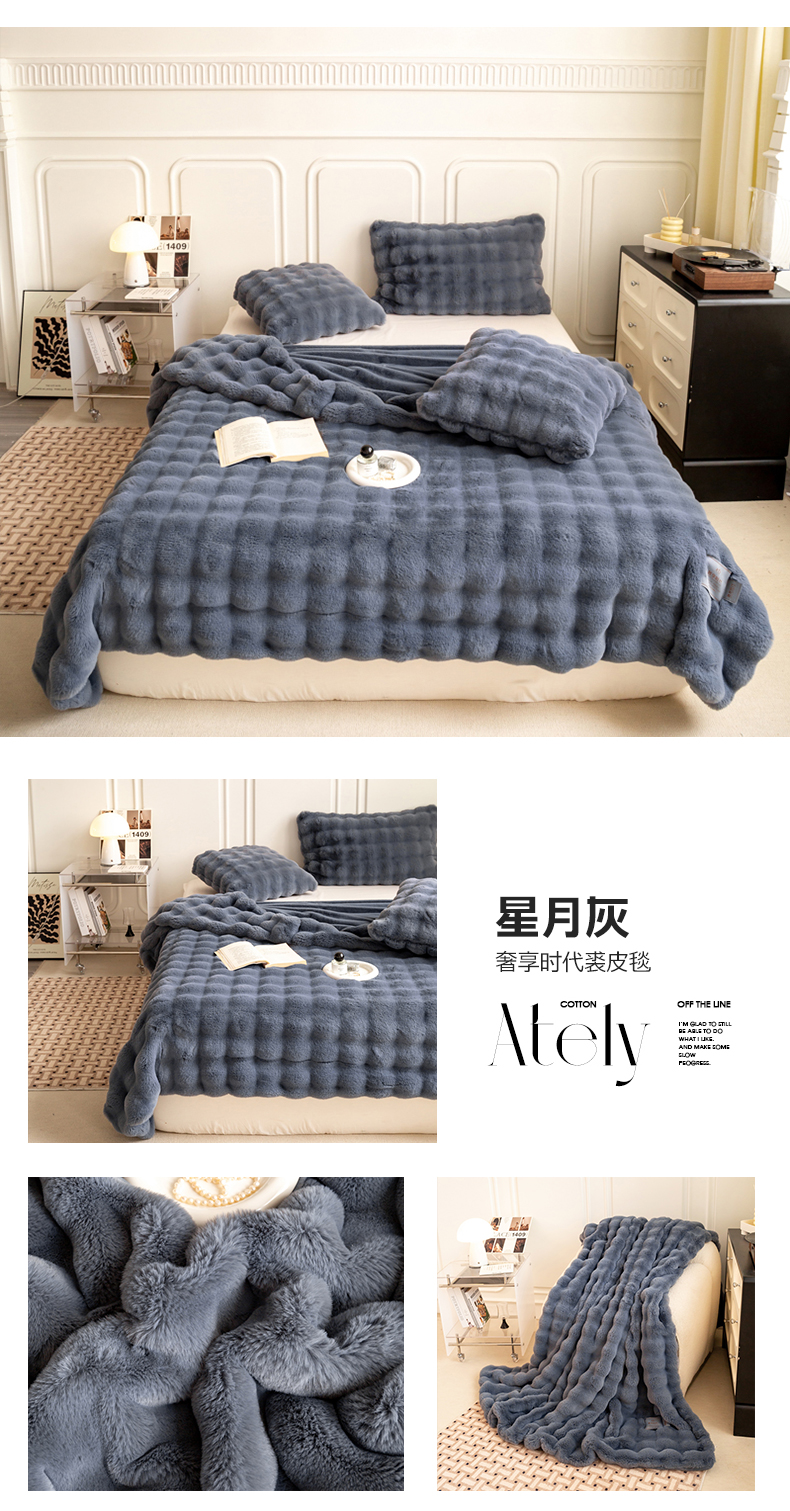 商品名称:尚品绵羊毛毯 2025新款仿裘皮皮草貂皮毛毯轻奢高端婚庆加厚双层拉舍尔毛毯 星月灰
