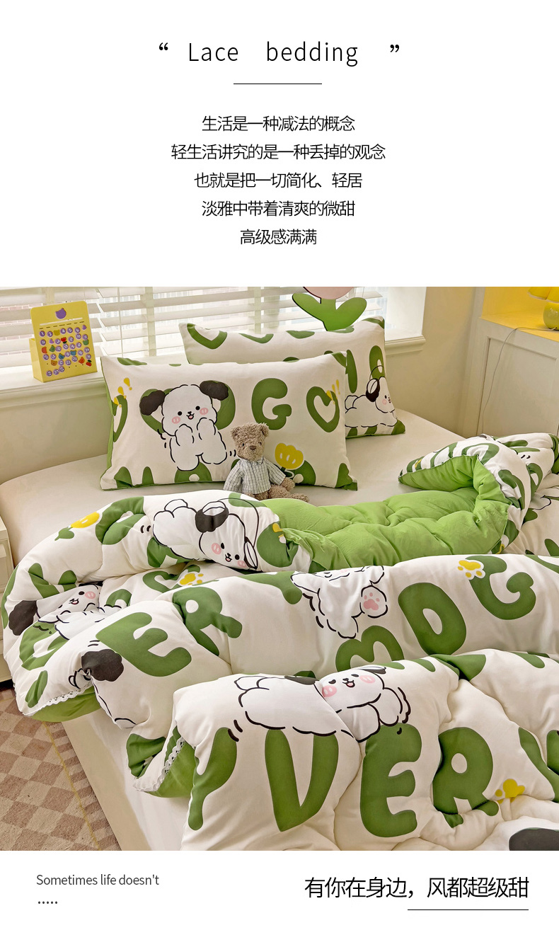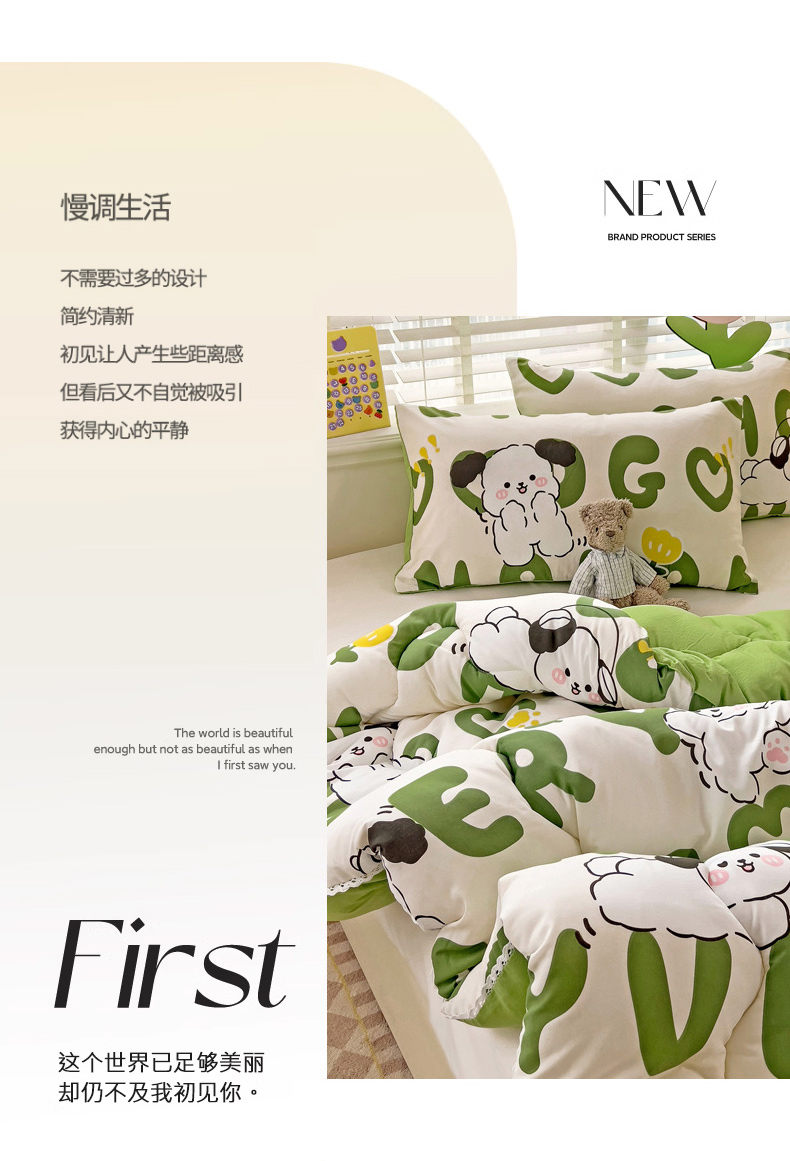 (总)寐居家纺 2025新款贴布绣高克重牛奶绒四件套,安吉拉喵,查理狗,粉糯kitty,皮皮布布