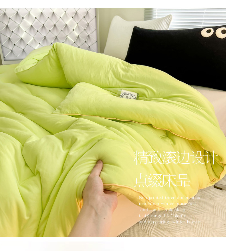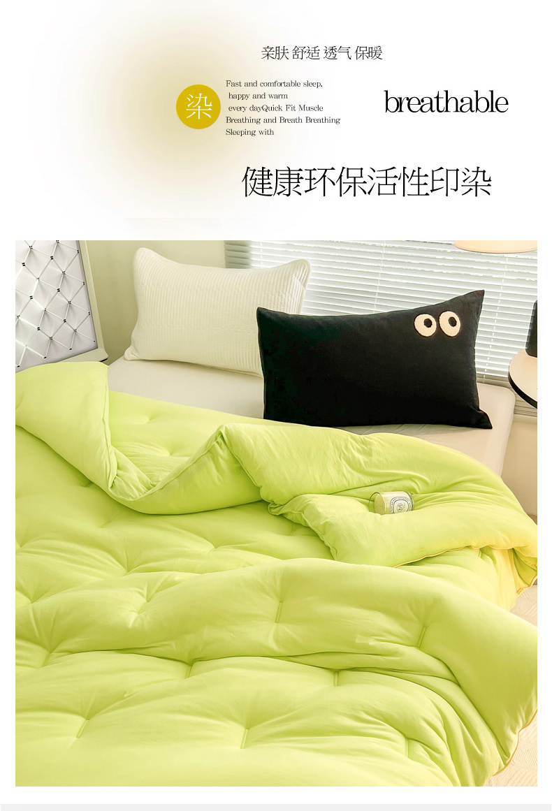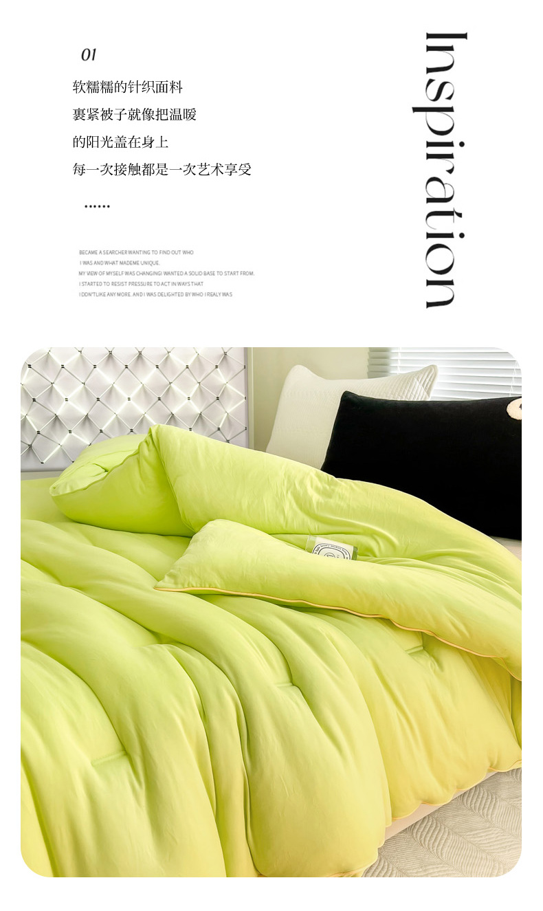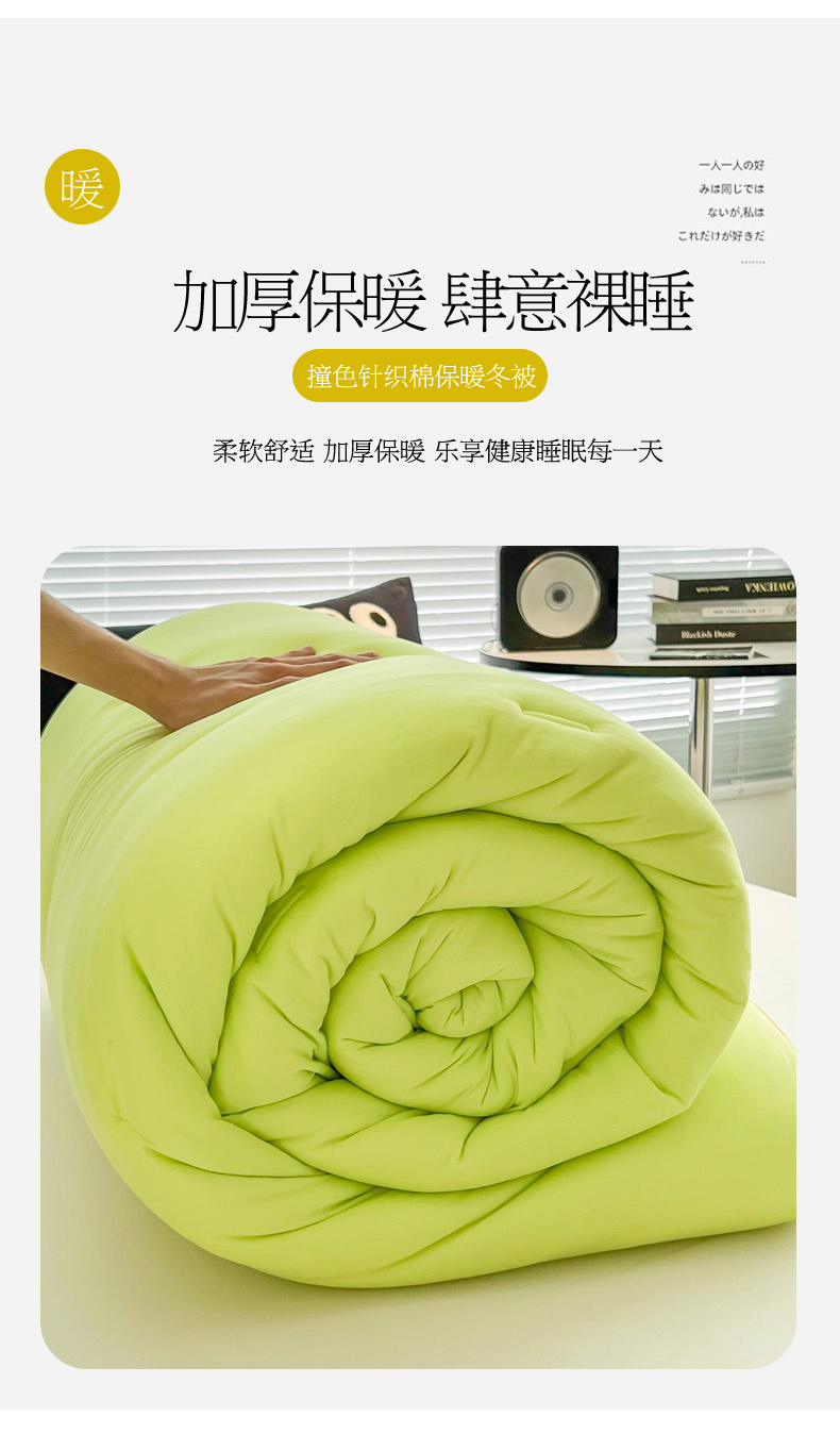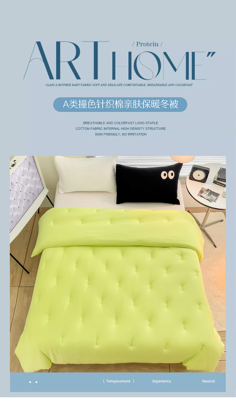 • 91家纺网 家纺一手货源 找家纺 寐居 2023新款A类撞色针织棉冬被 芥末绿