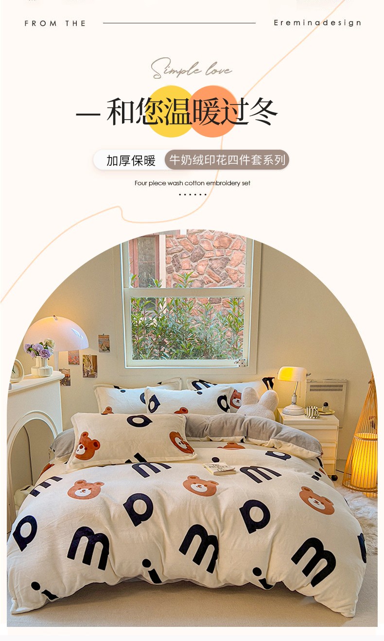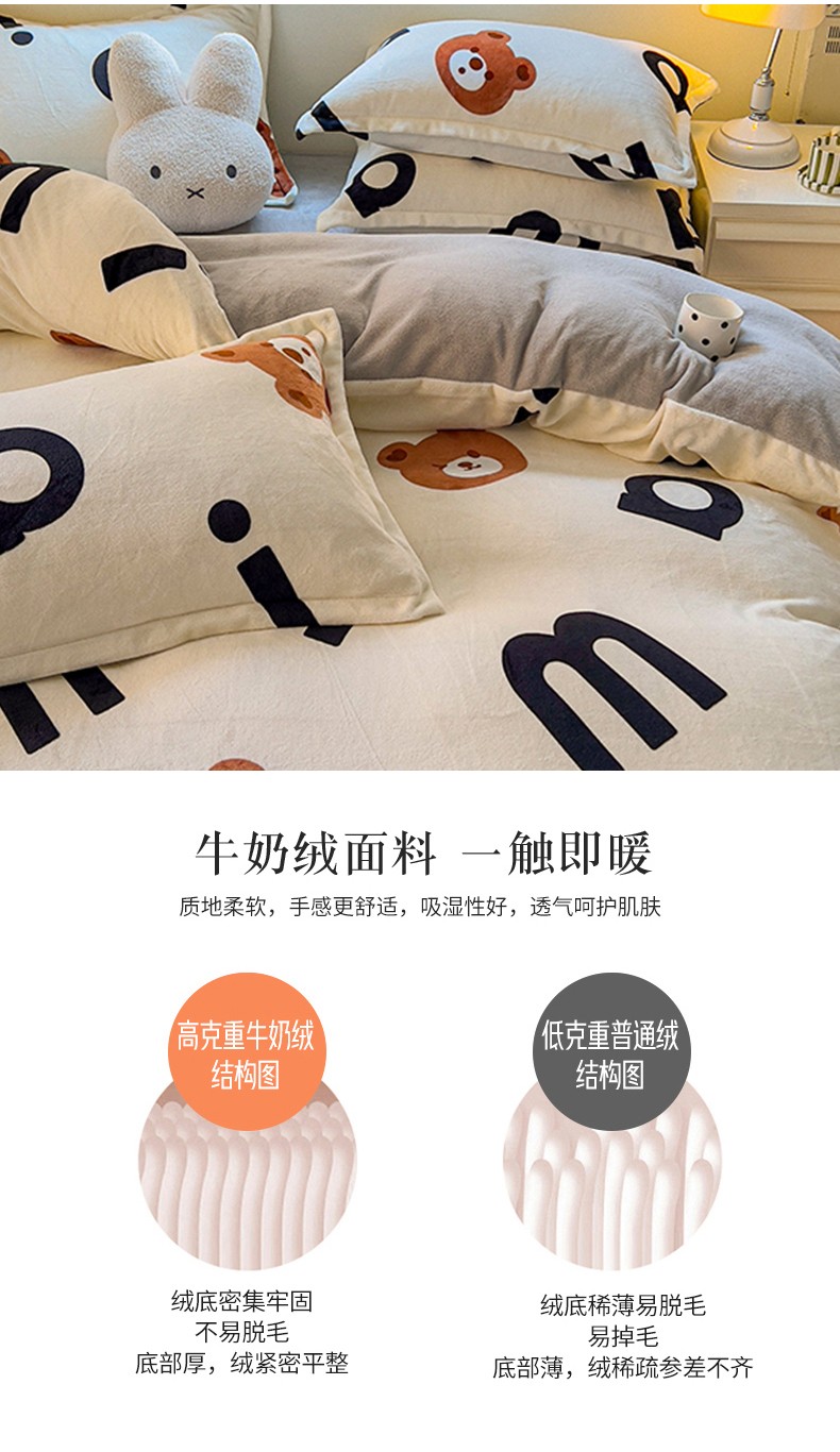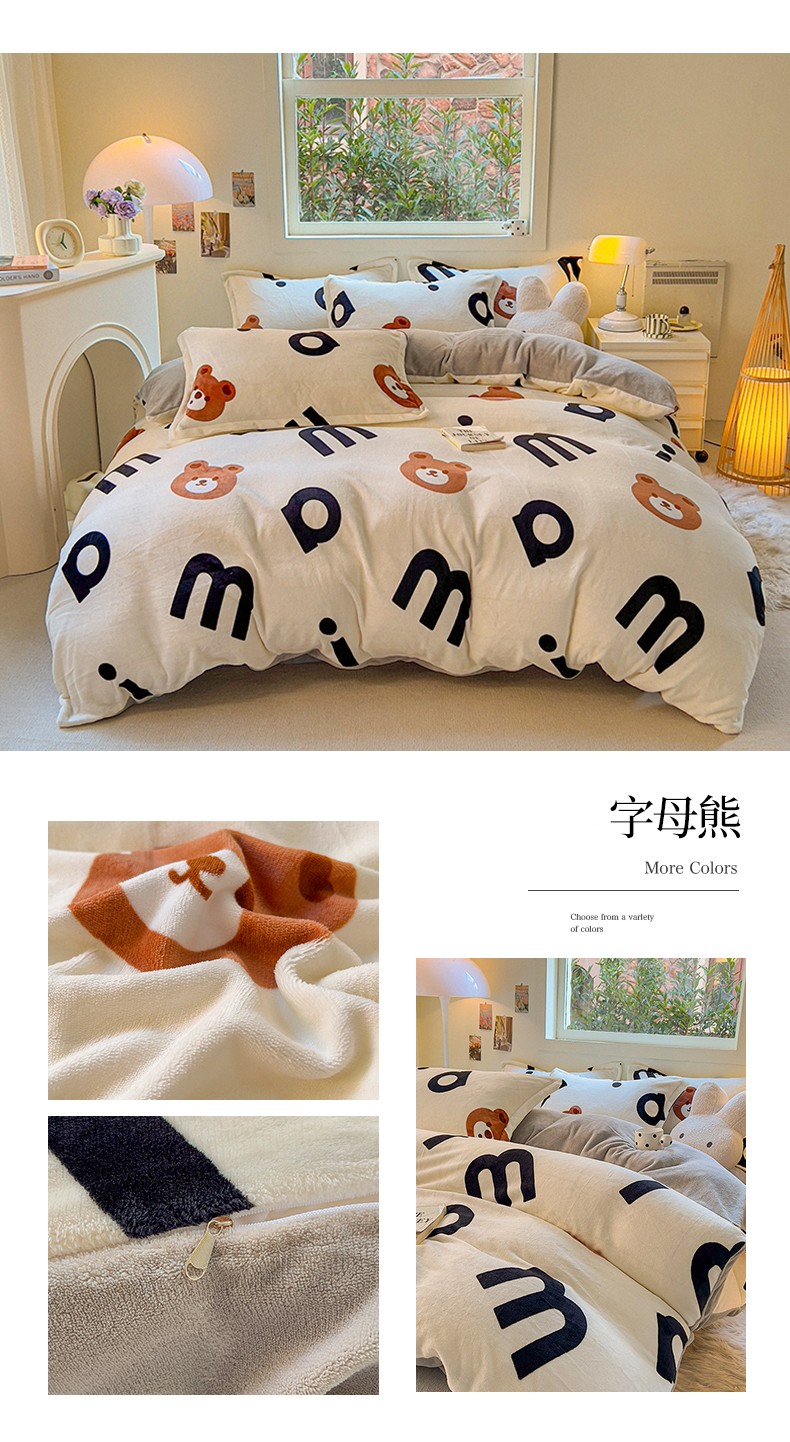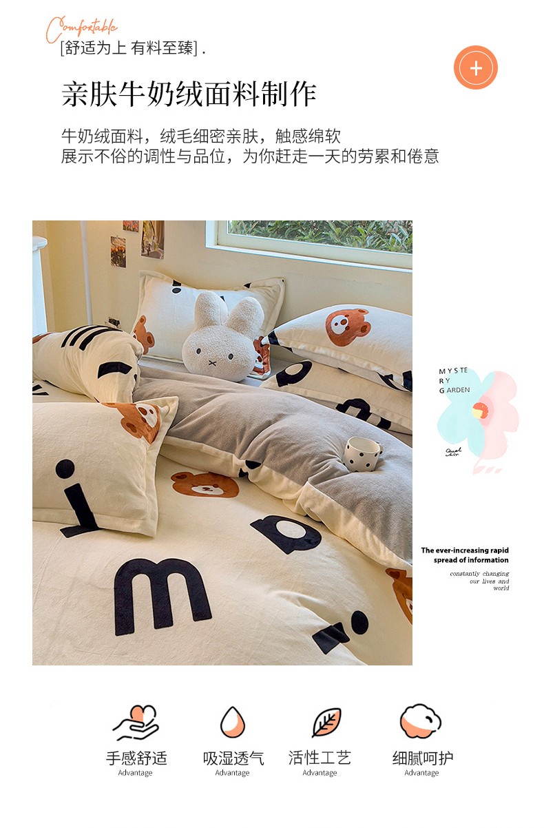 商品名称:慕尚 2025新款高克重加厚牛奶绒印花单被套-田园花卉系列 字母熊