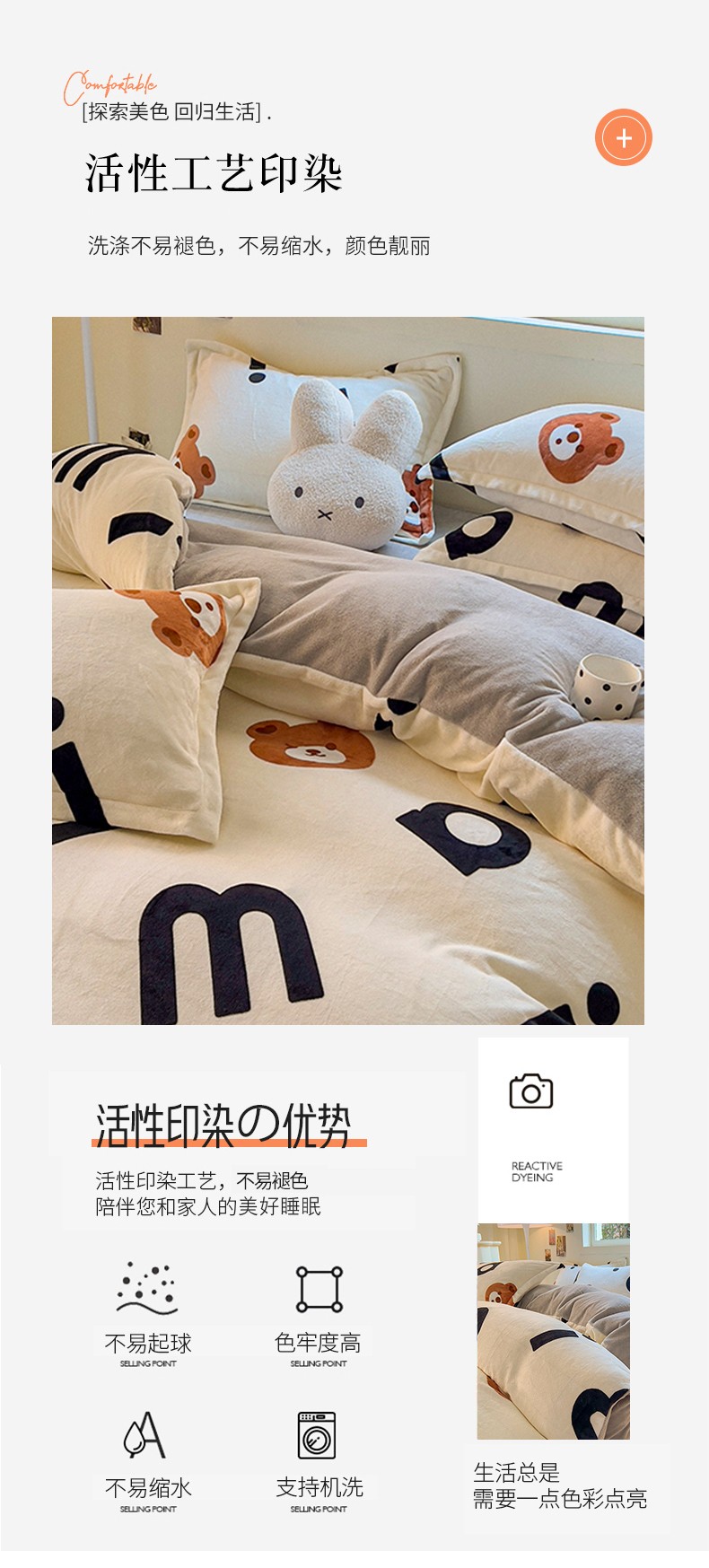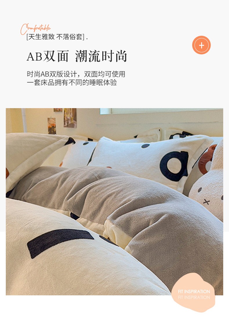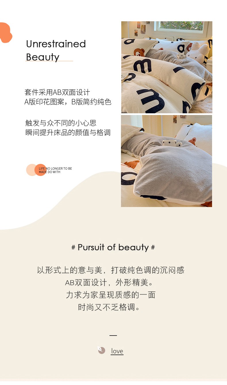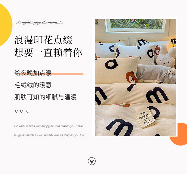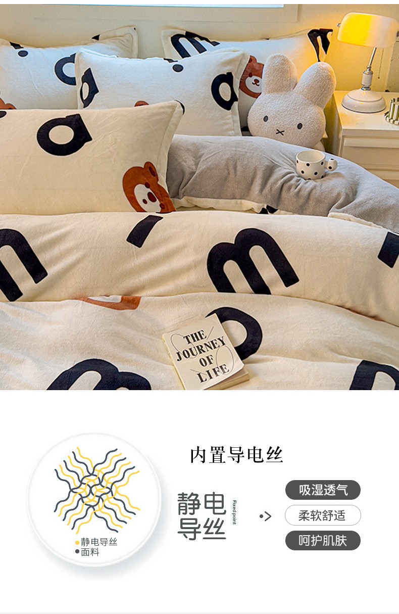 商品名称:慕尚 2025新款高克重加厚牛奶绒印花单被套-田园花卉系列 字母熊