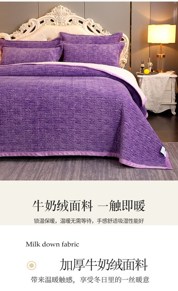 • 91家纺网 家纺一手货源 找家纺 2023新款水波纹色织牛奶绒床盖三件套 涟漪-罗兰紫