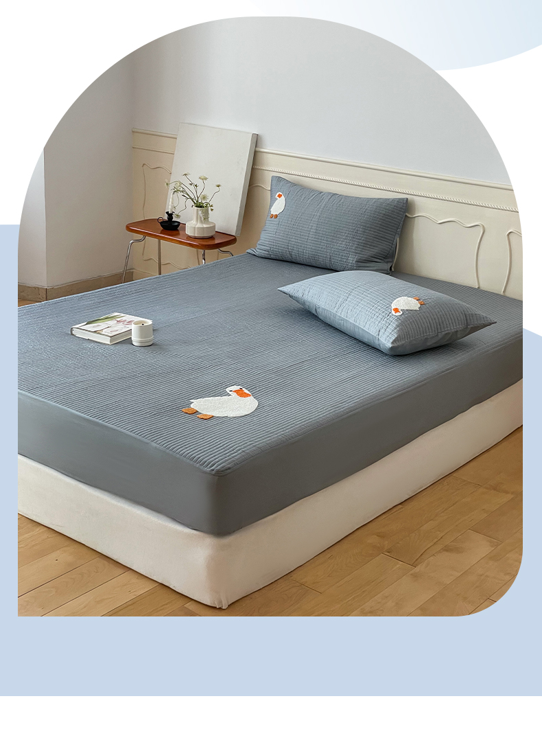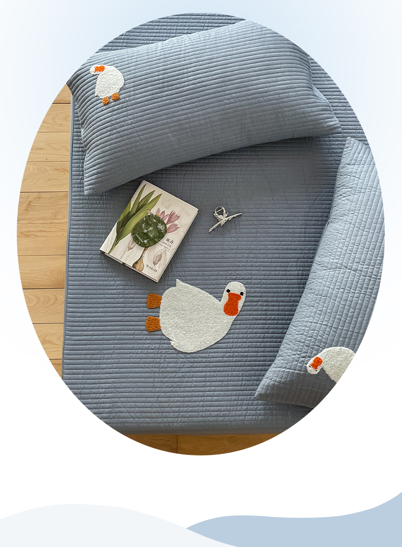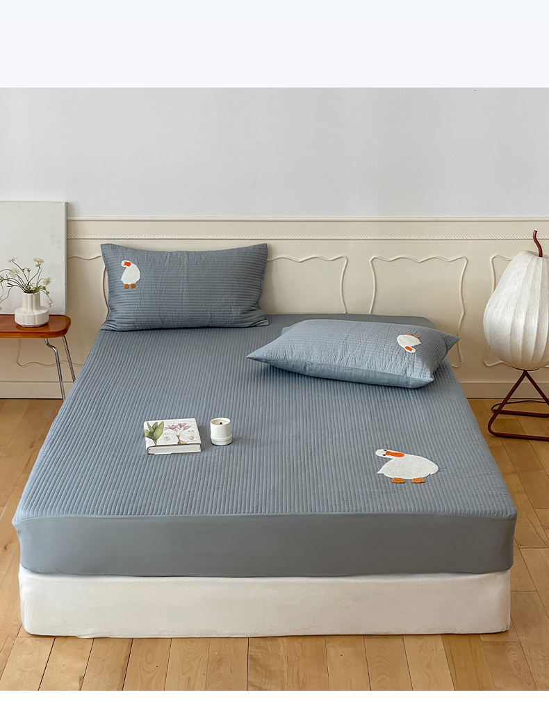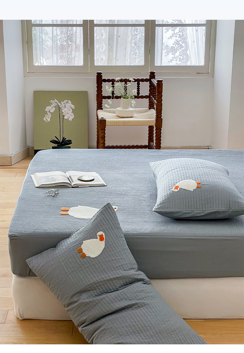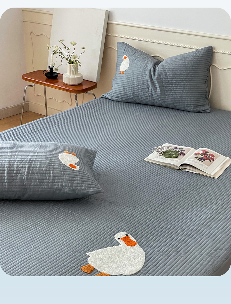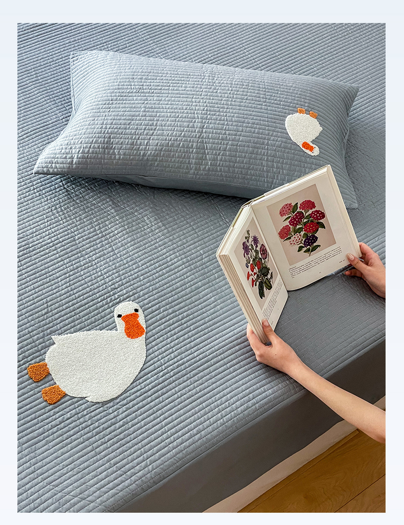 商品名称:三味舒屋 2024新款40支砂洗全棉你好鸭毛巾绣床笠 你好鸭.蓝灰