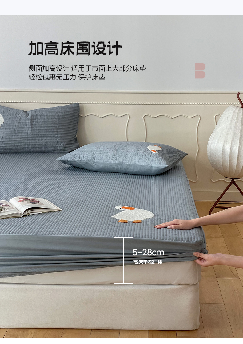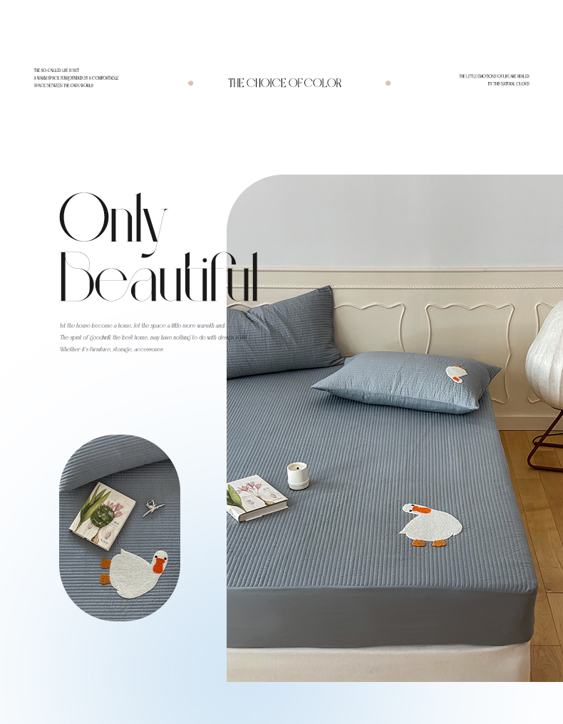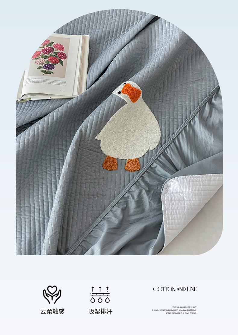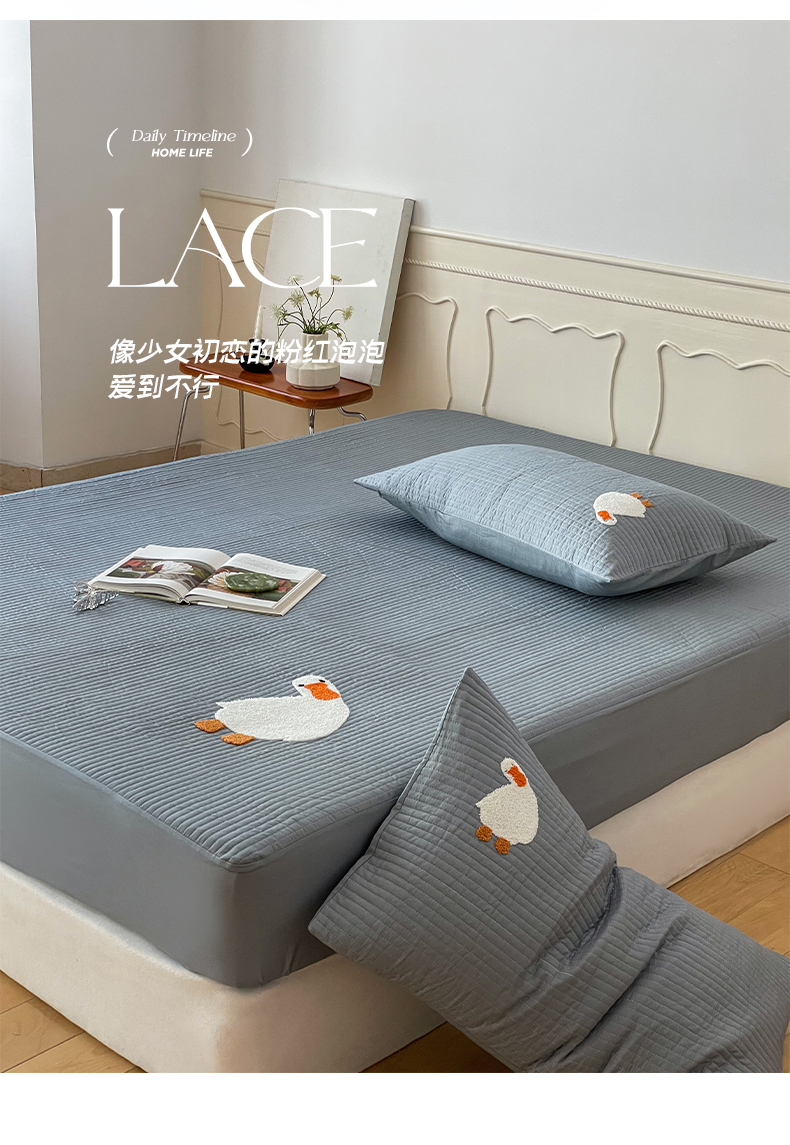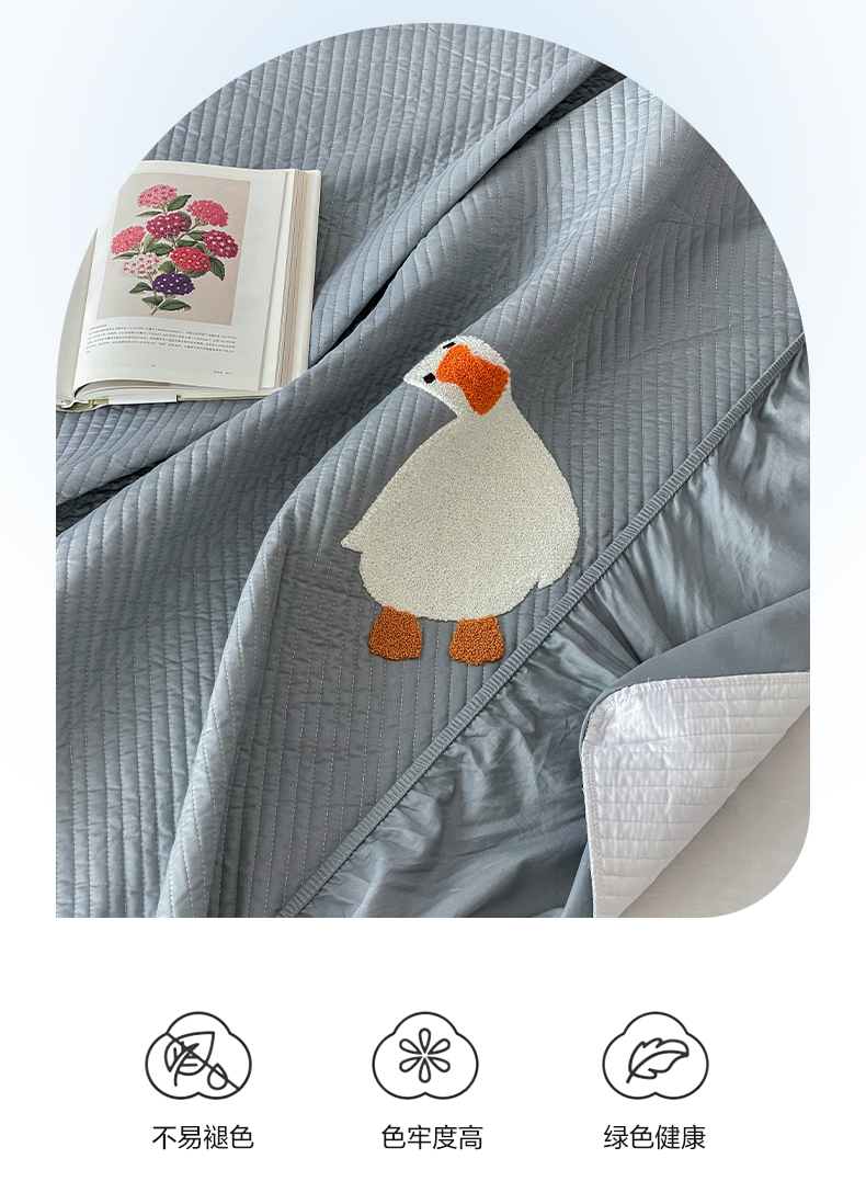 商品名称:三味舒屋 2024新款40支砂洗全棉你好鸭毛巾绣床笠 你好鸭.蓝灰