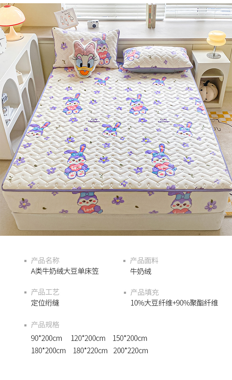 商品名称:卡伦家纺 2025新款A类牛奶绒大豆纤维抗菌夹棉床笠 星梦露