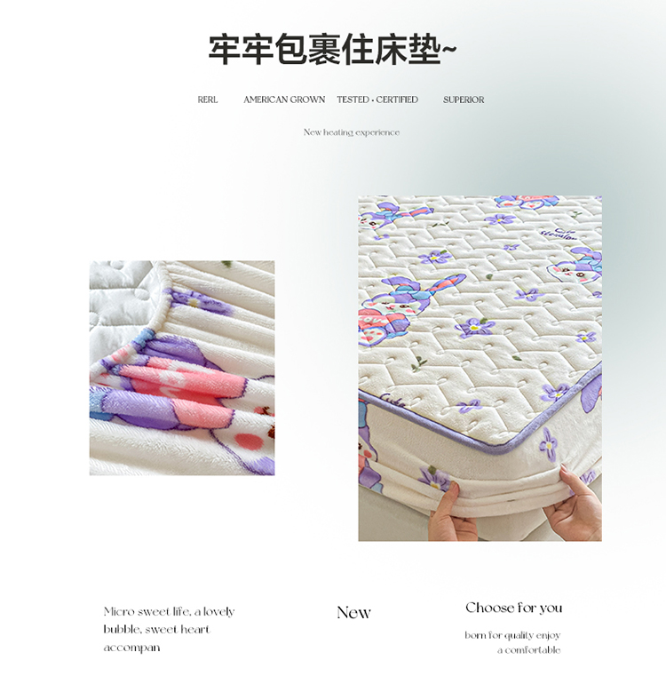 (总)卡伦家纺 2025新款A类牛奶绒夹棉加厚床垫单人双人床垫保护垫,爱的印记,爱心熊,安妮宝贝,宝石蓝,缤纷小可爱,草莓之恋,呆萌恐龙,高级灰,高雅紫,红豆沙,花间蘑力,花开一夏,花之谷,金叶飘香,开心乐园,梦想创造家,抹茶绿,南瓜灰灰,南瓜派,青春曲调,轻羽飞扬,甜蜜爱心,甜心小熊,香槟金,心相印,星幻恐龙,星梦露,熊熊世界,樱桃花语,云端漫步