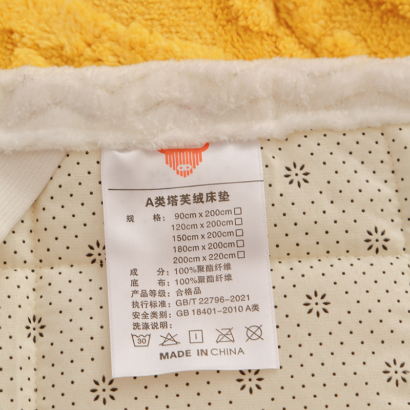 商品名称:牛魔王家居 2023新款塔芙绒床垫软床垫可机洗薄垫 亮黄