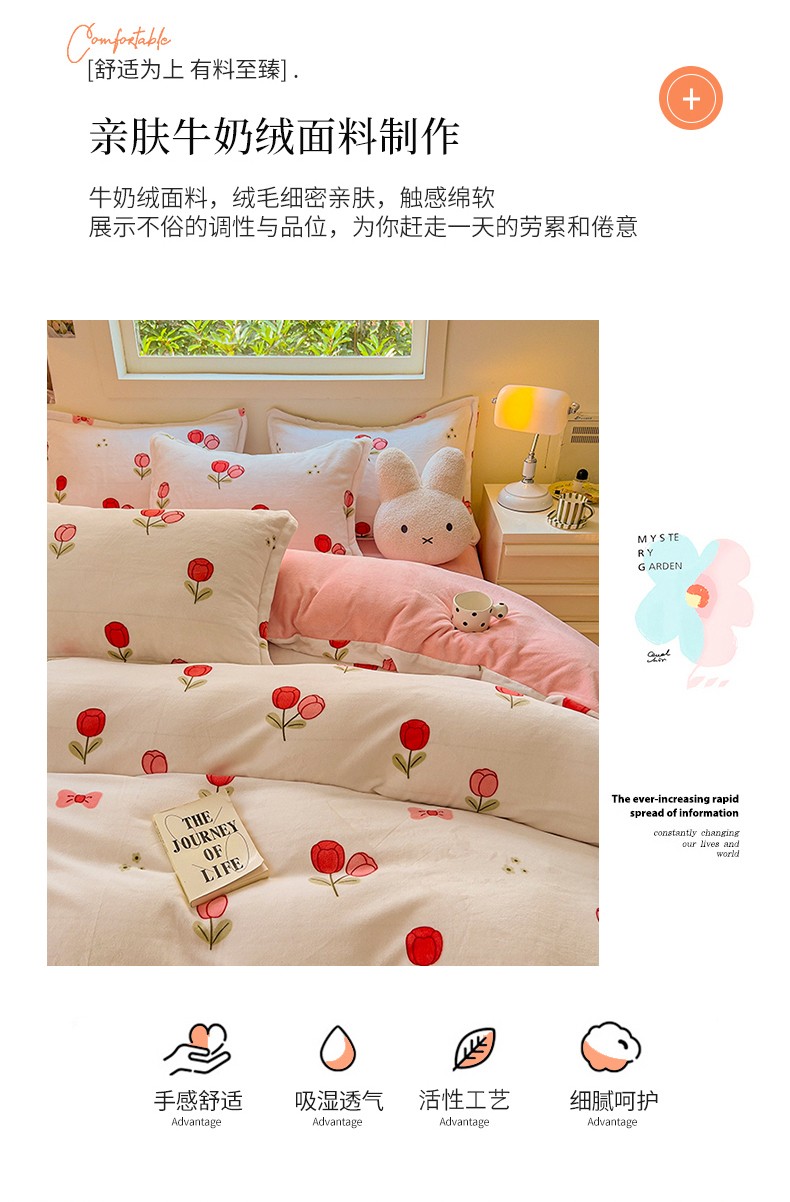 当前位置: 91家纺网 > 商品网购 > 床品套件 > 四件套 > 牛奶绒四件套 > 慕尚 2025新款高克重加厚牛奶绒印花四件套-田园花卉系列 郁金香