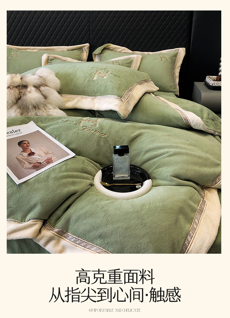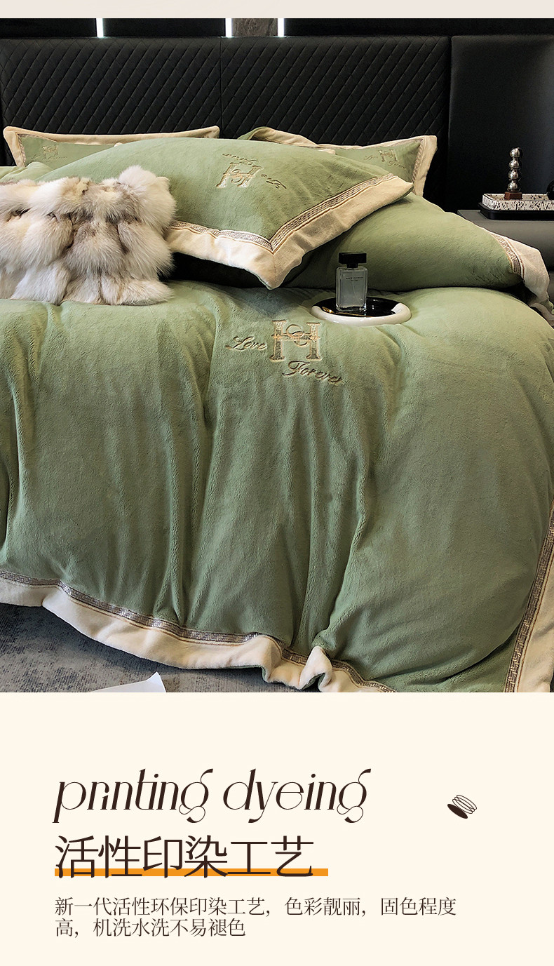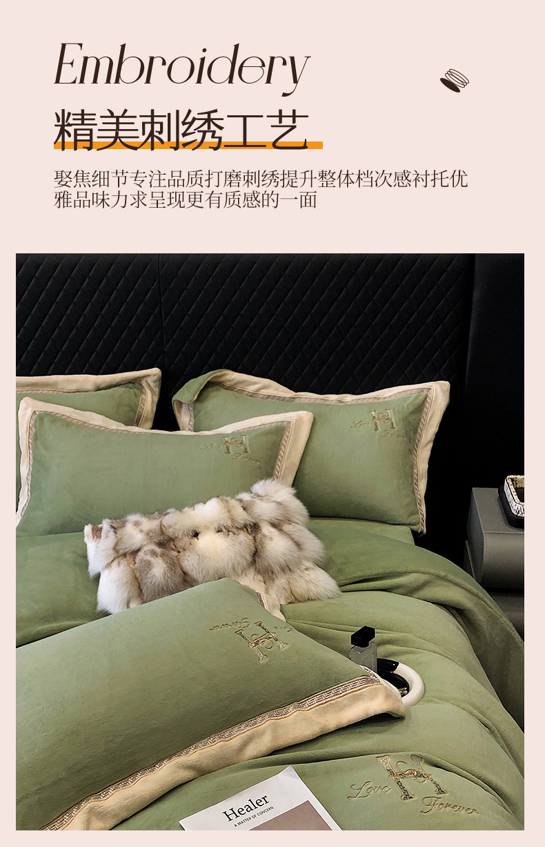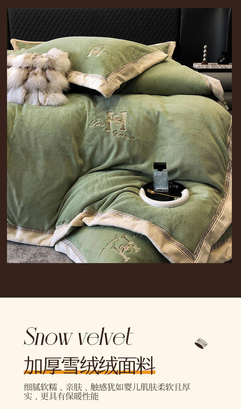 保罗圣迪奥 2024新款雪绒绒刺绣四件套-维也纳 维也纳-抹茶绿