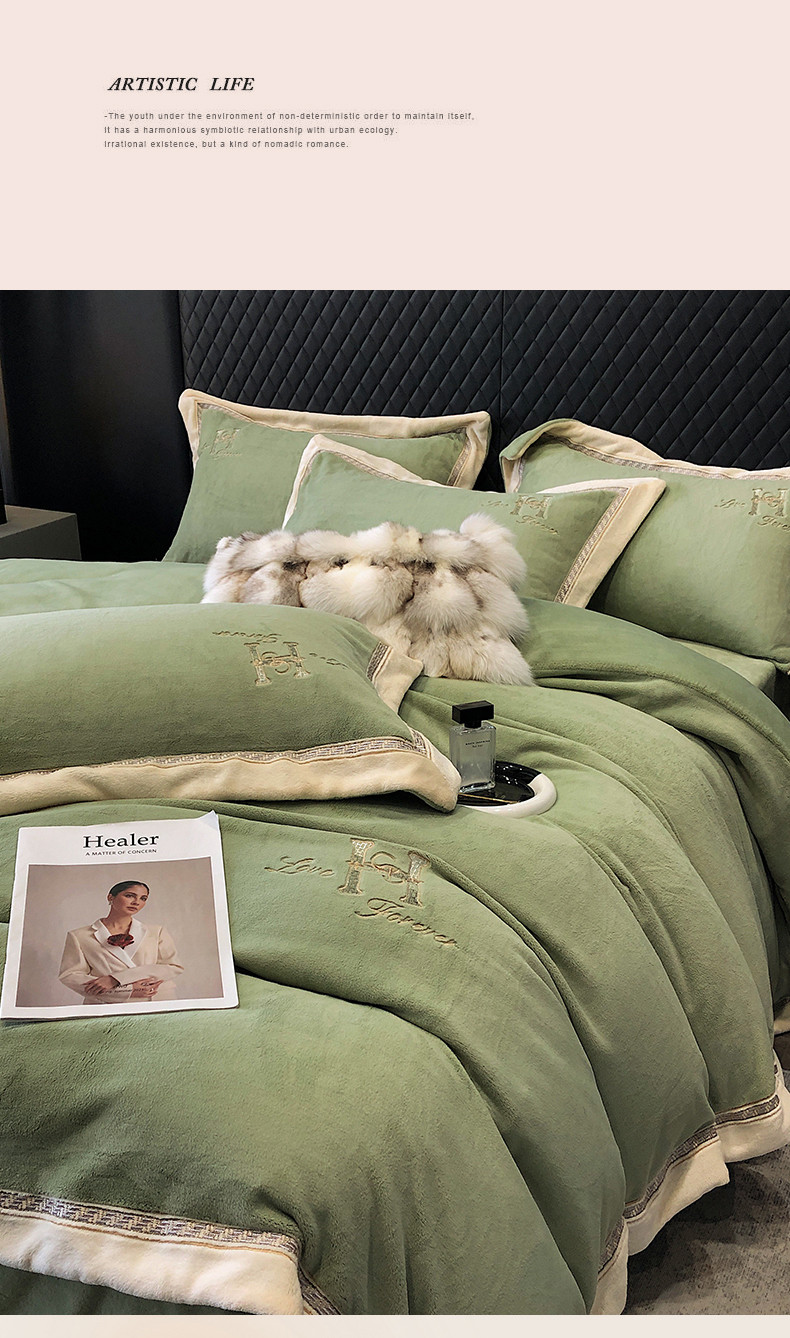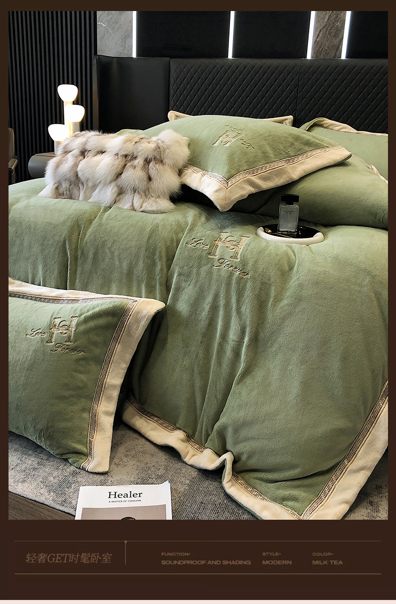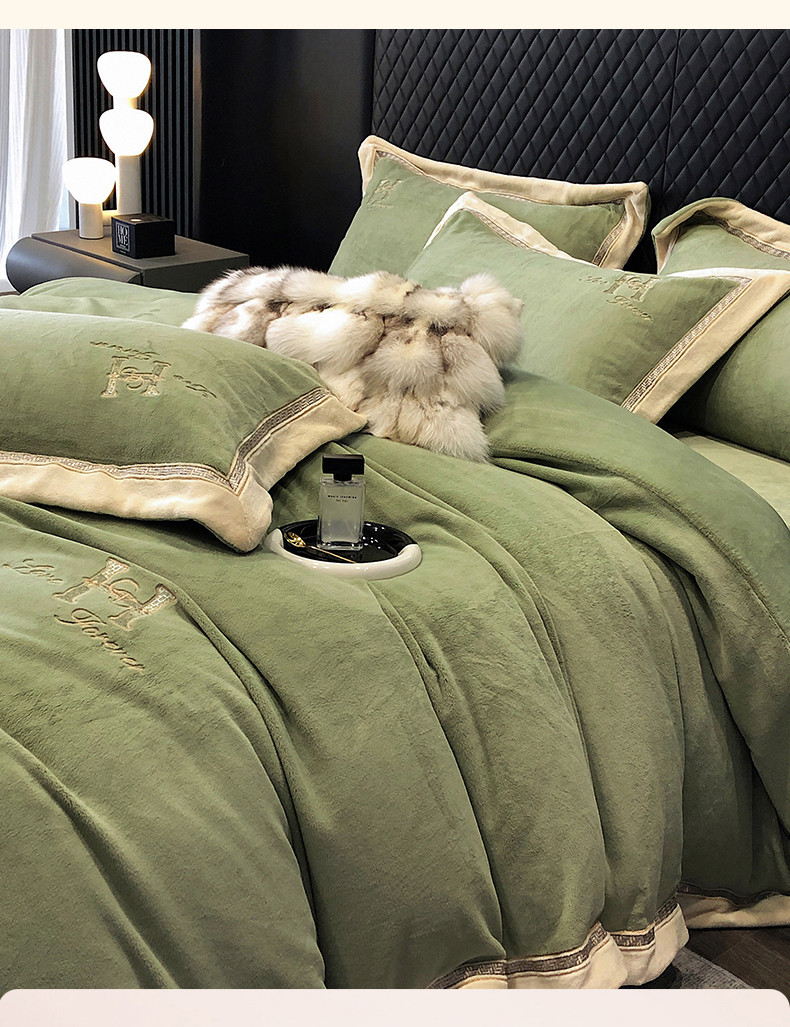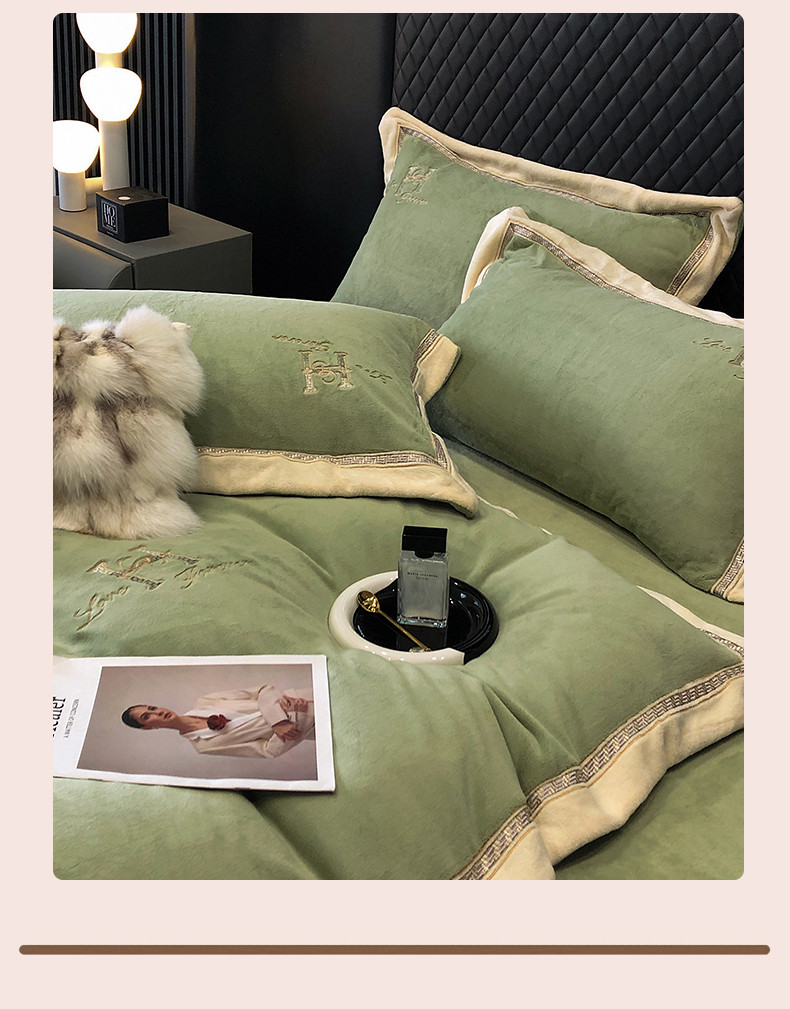 保罗圣迪奥 2024新款雪绒绒刺绣四件套-维也纳 维也纳-抹茶绿