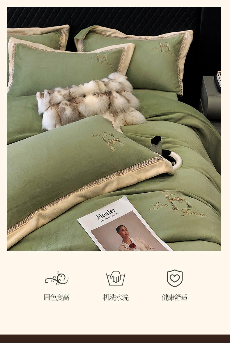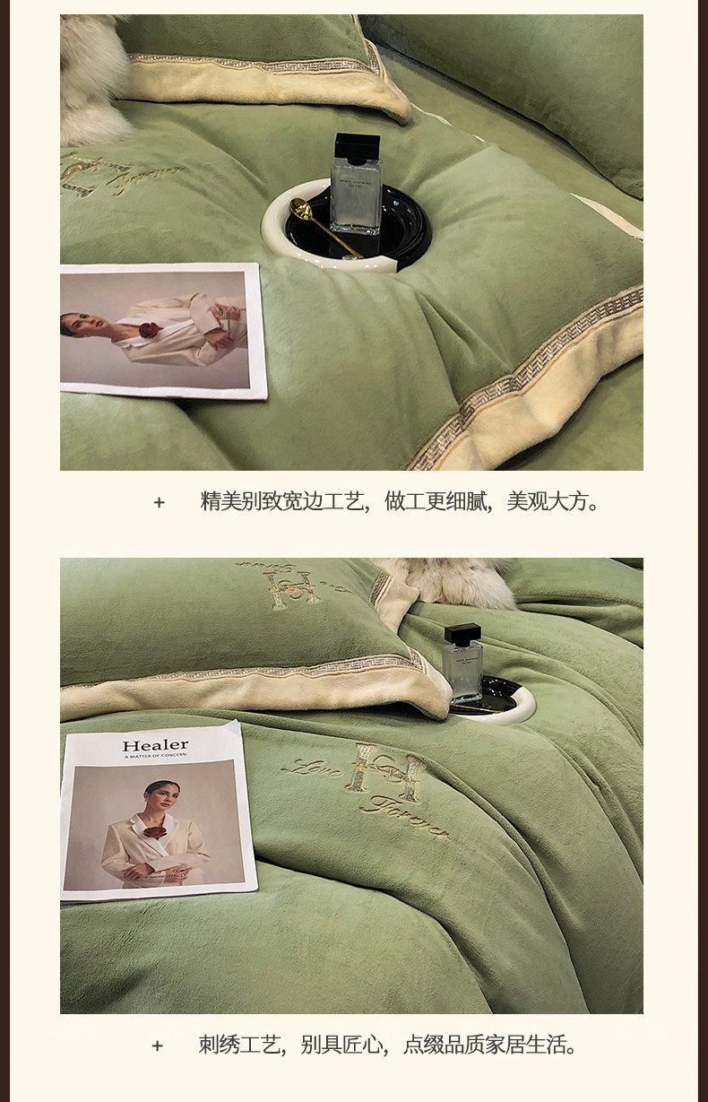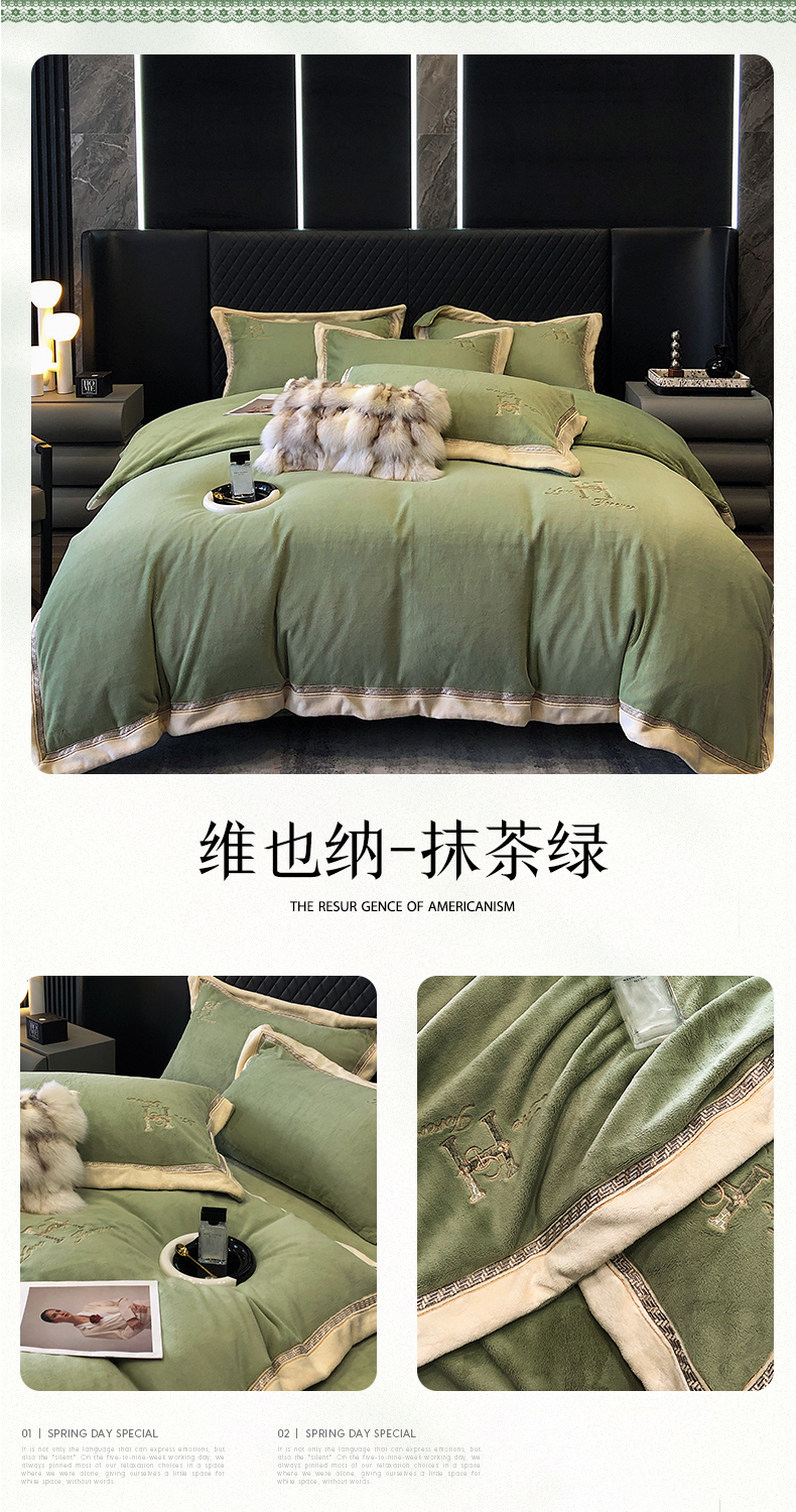 商品名称:保罗圣迪奥 2024新款雪绒绒刺绣四件套-维也纳 维也纳-抹茶绿