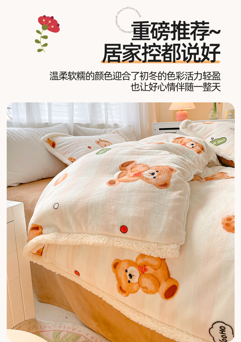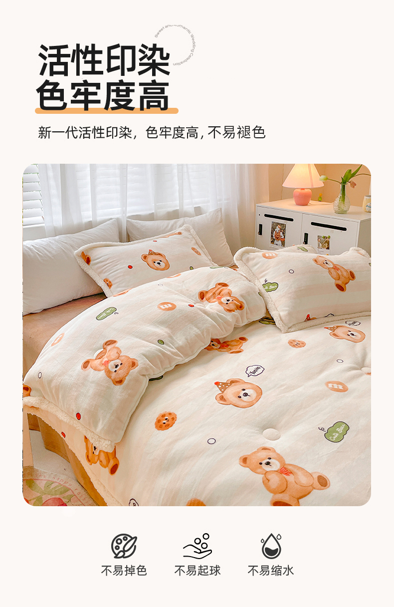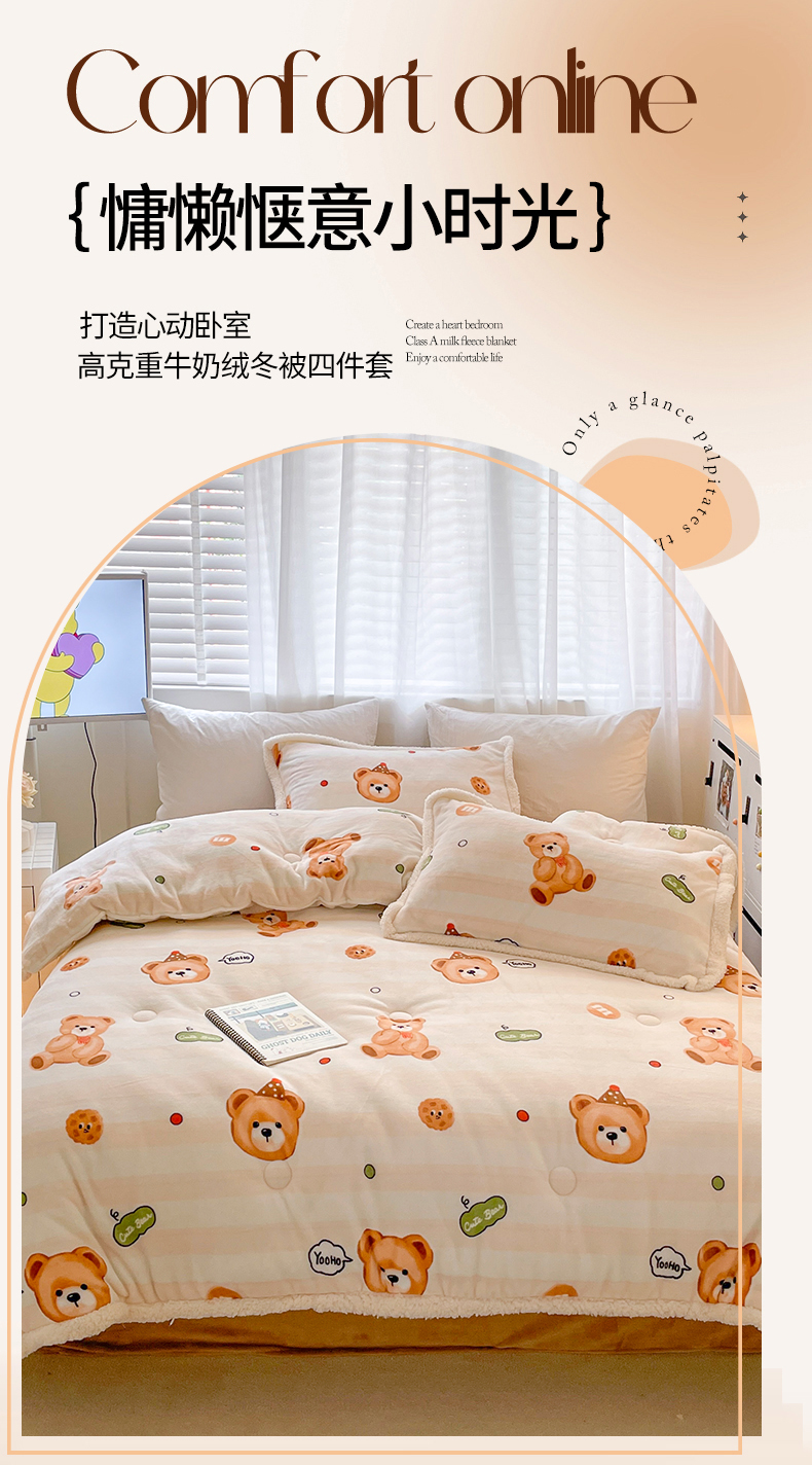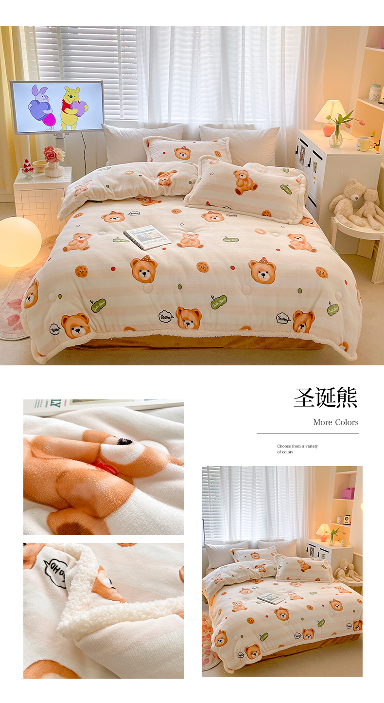 当前位置: 91家纺网 > 商品网购 > 床品套件 > 四件套 > 牛奶绒四件套 > 大彩家居 2023新款高克重牛奶绒冬被四件套 圣诞熊