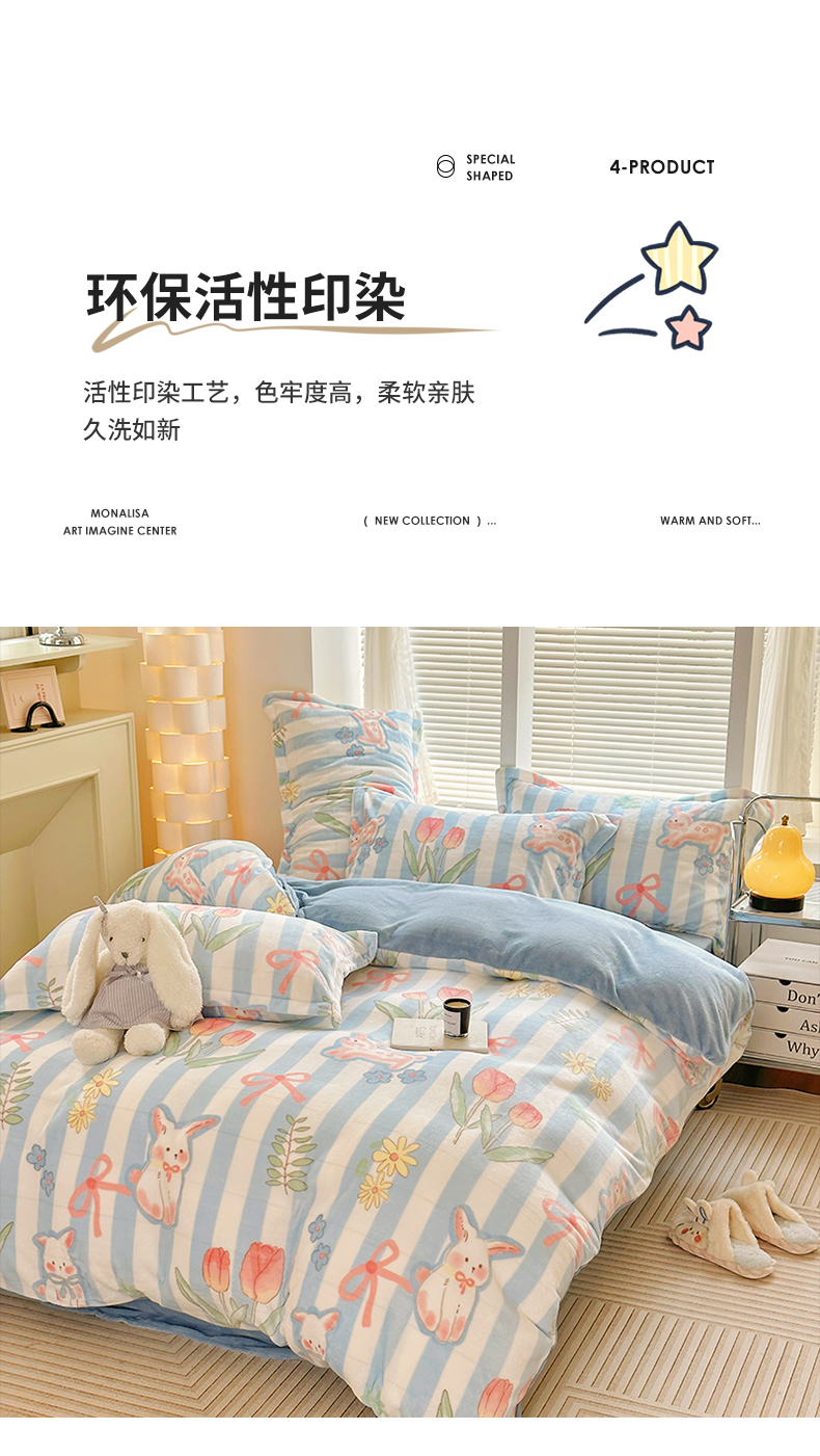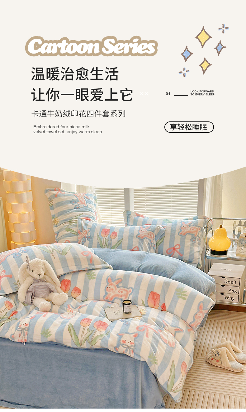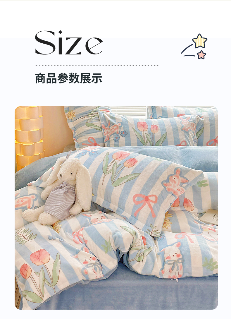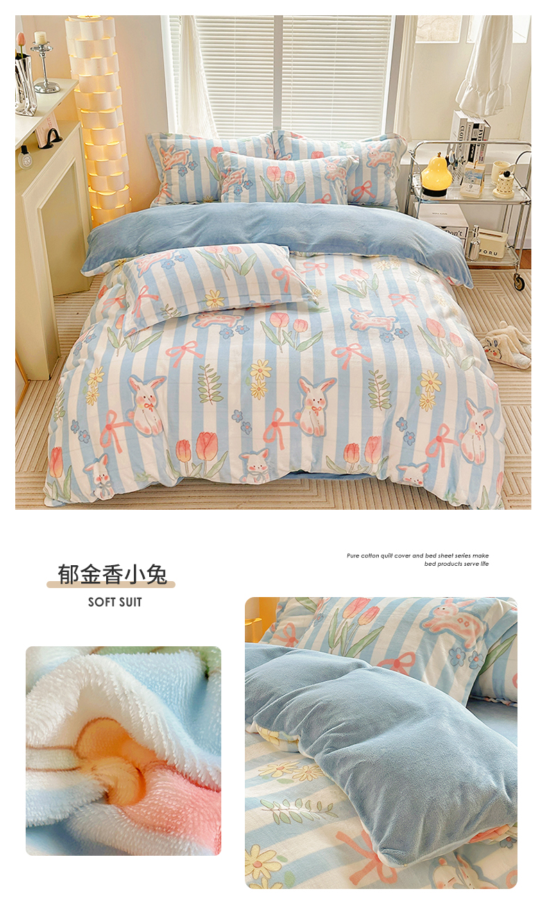当前位置: 91家纺网 > 商品网购 > 床品套件 > 四件套 > 牛奶绒四件套 > 2023新款牛奶绒卡通印花四件套 郁金香小兔