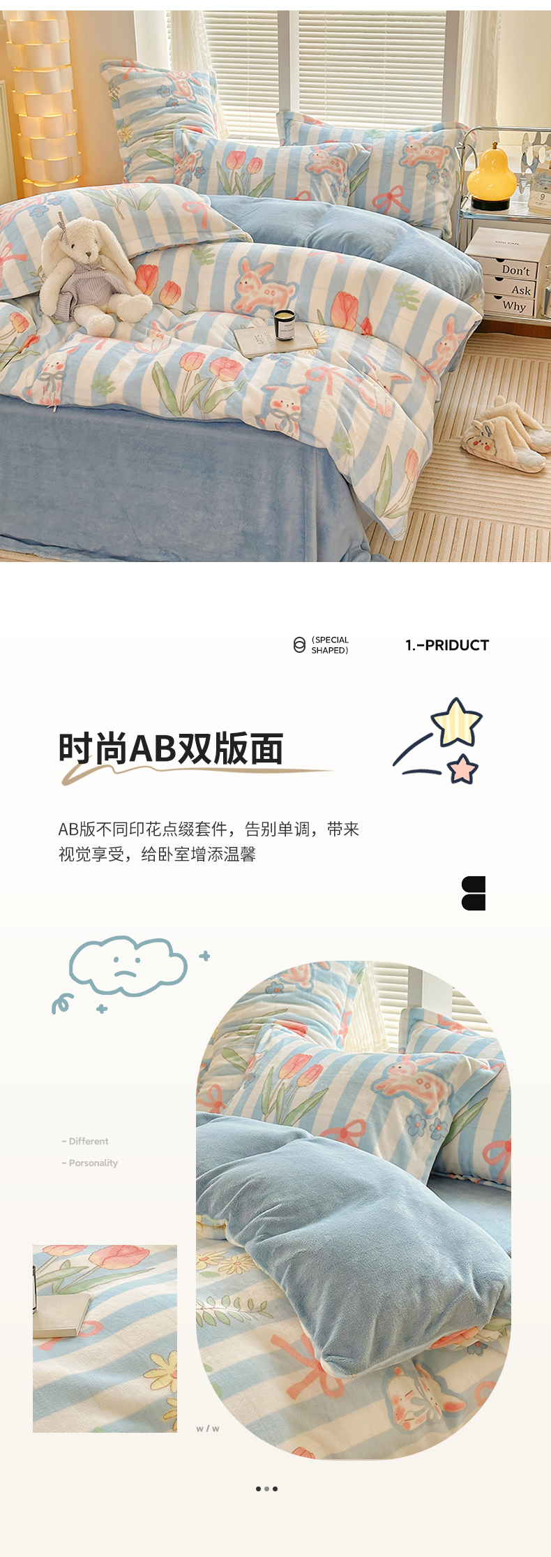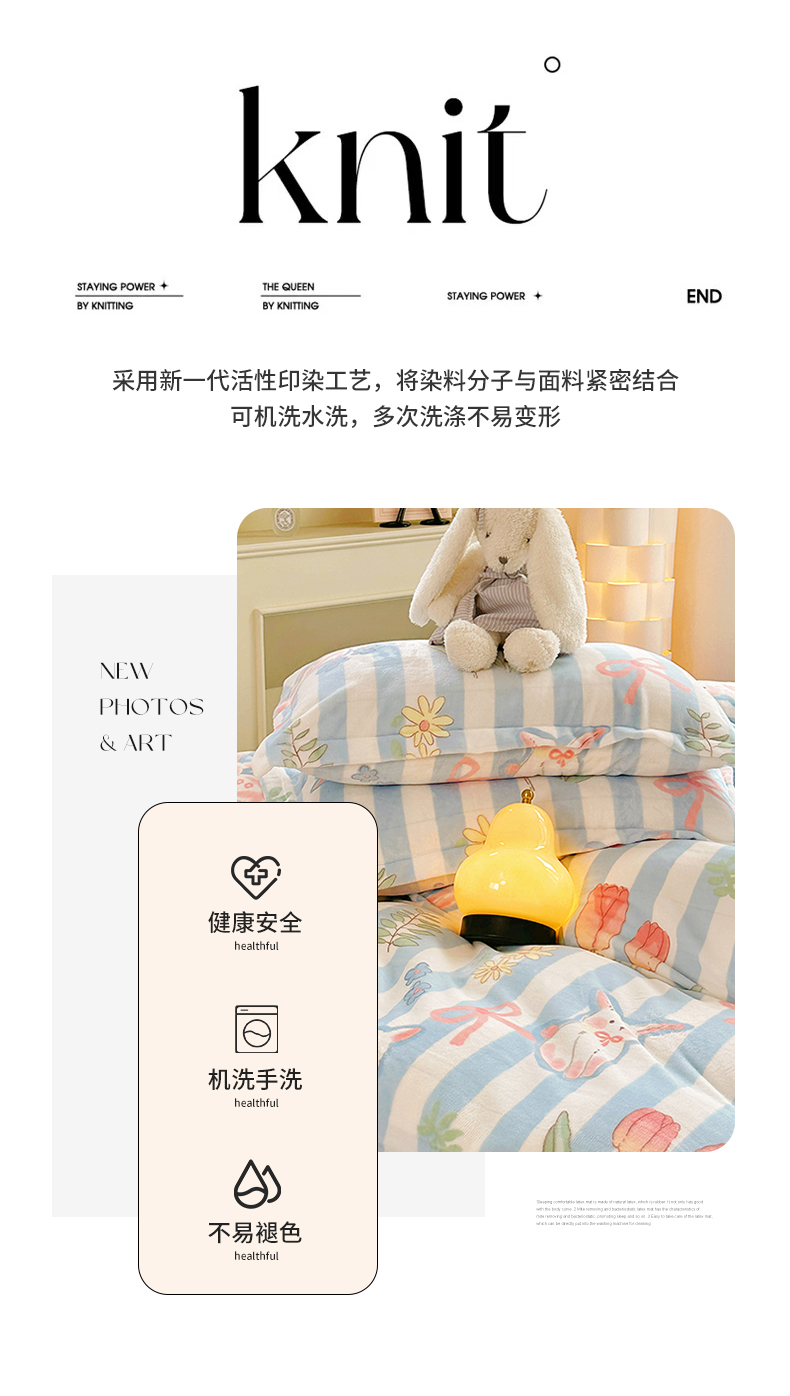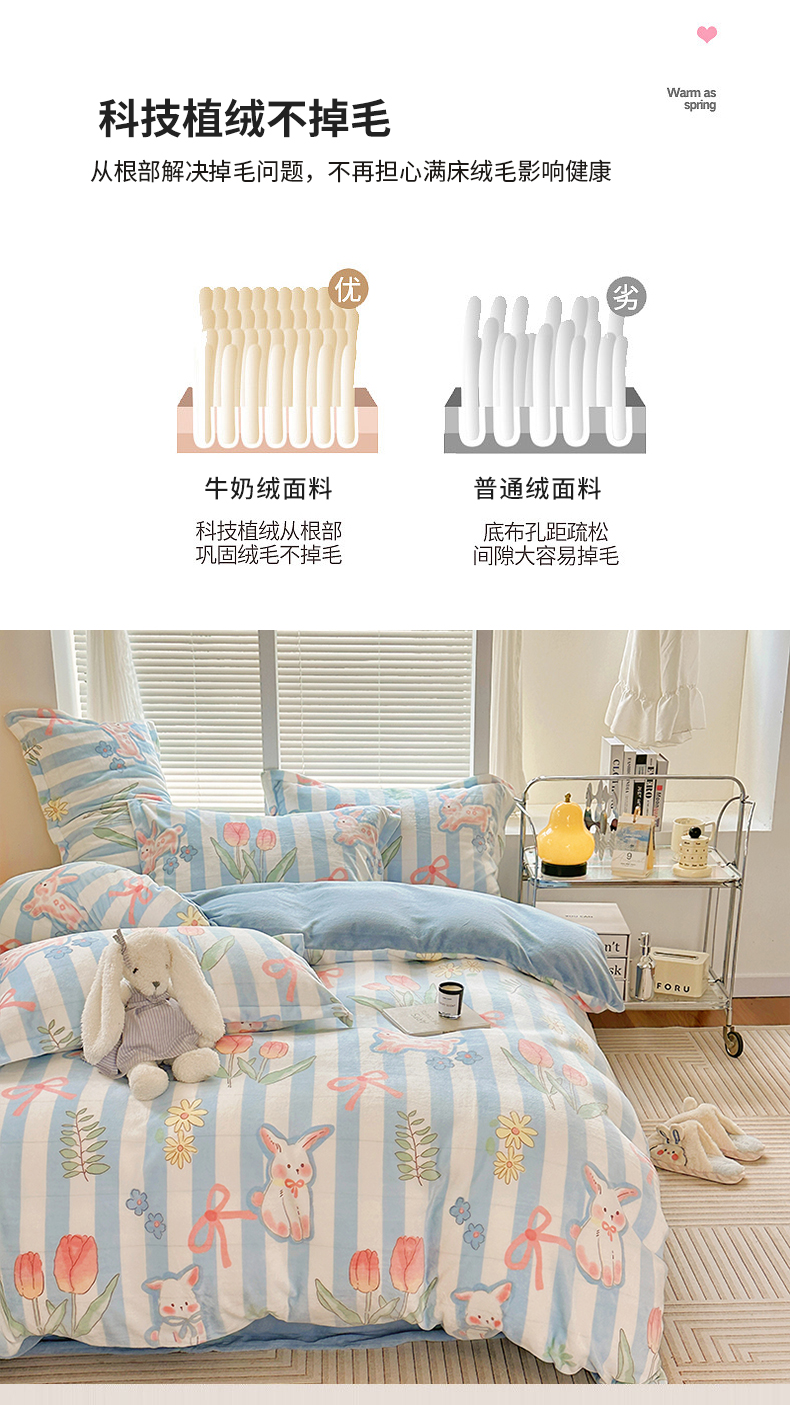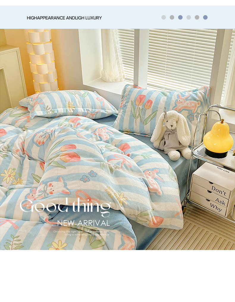 当前位置: 91家纺网 > 商品网购 > 床品套件 > 四件套 > 牛奶绒四件套 > 2023新款牛奶绒卡通印花四件套 郁金香小兔