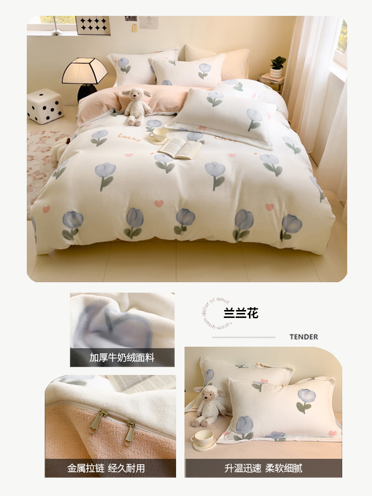 当前位置: 91家纺网 > 商品网购 > 床品套件 > 四件套 > 牛奶绒四件套 > 宅部落 2023新款高克重牛奶绒四件套 兰兰花