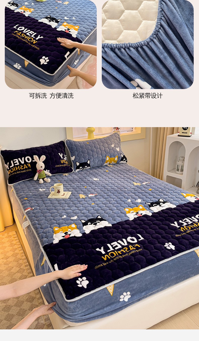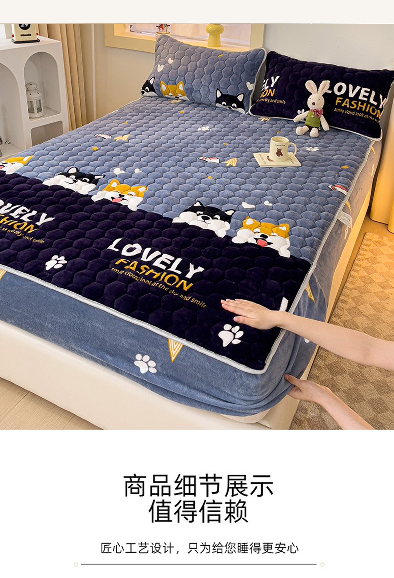 • 91家纺网 家纺一手货源 找家纺 梦舒羽 牛奶绒抗静电夹棉床笠床罩床单床盖床护垫套宿舍三件套 可爱狗