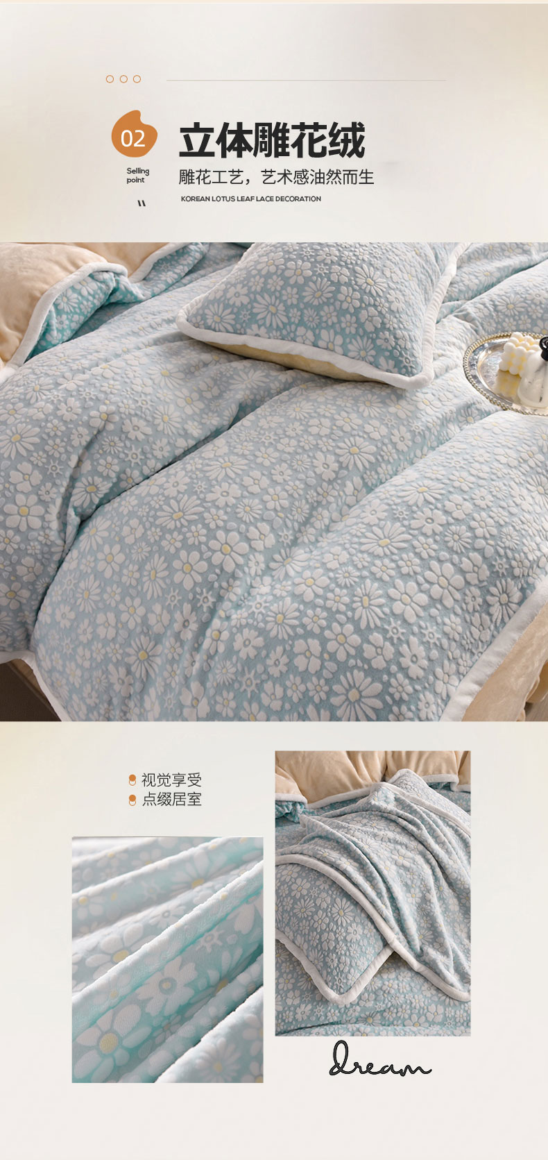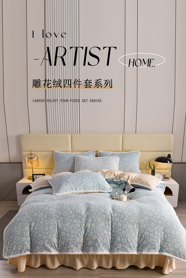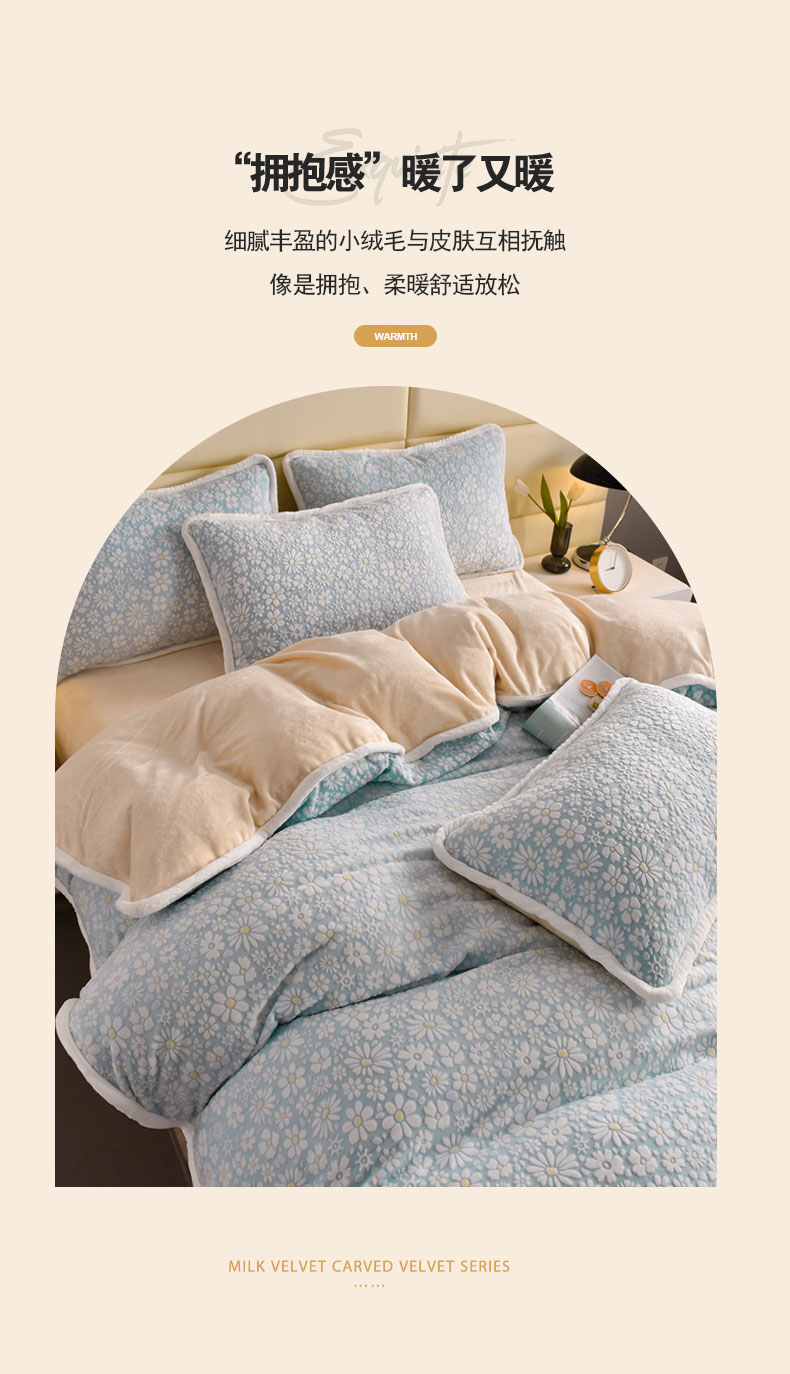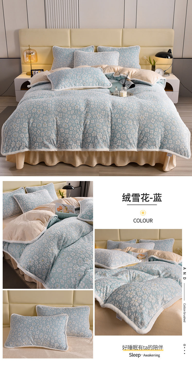 商品名称:畅畅家纺 2023新款A类雕花绒牛奶绒四件套 绒雪花-蓝