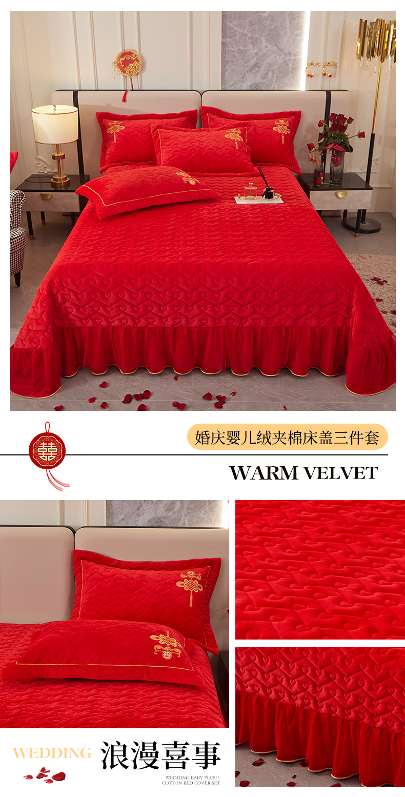 商品名称:宜凡家纺 2023秋冬新品婴儿绒婚庆床盖三件套 浪漫喜事