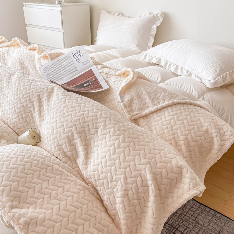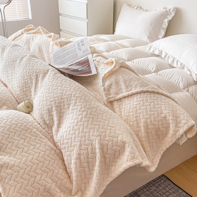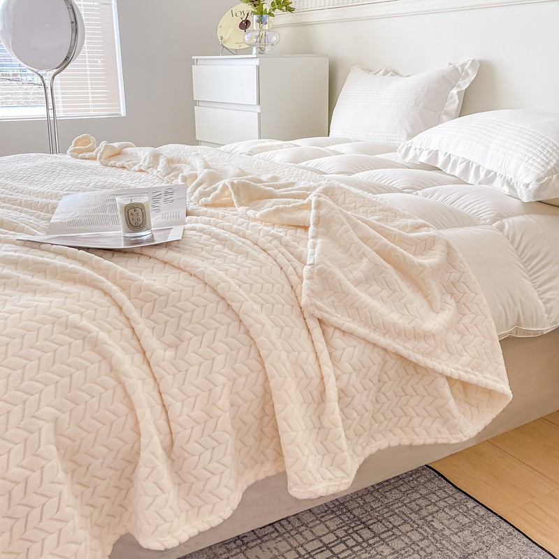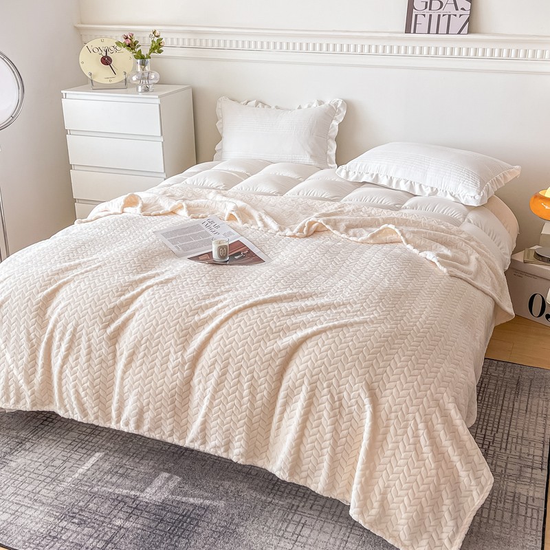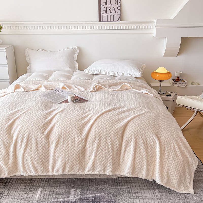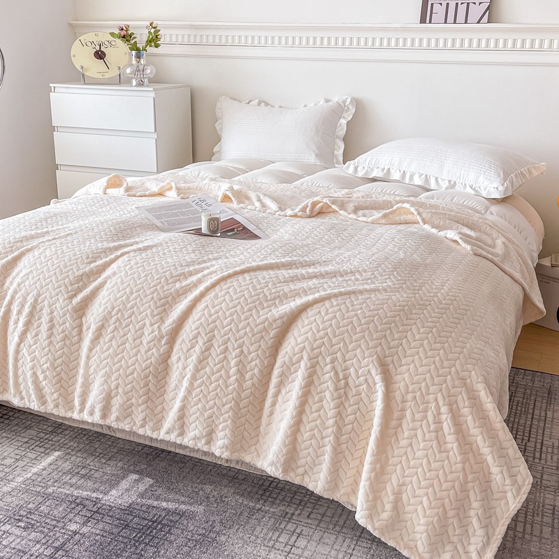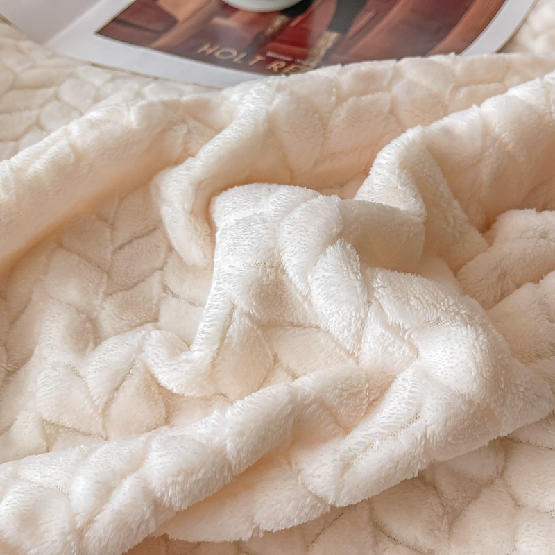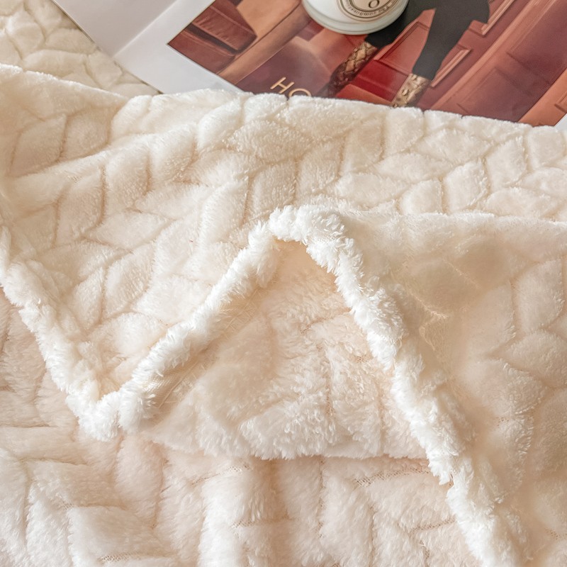 商品名称:金来家纺 跨境电商 2024新款法莱绒提花麦穗毛毯 盖毯子办公午睡毯 提花麦穗 米白