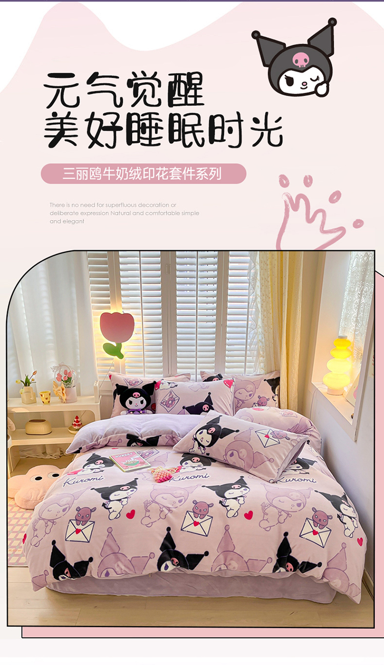 商品名称:星座 2025三丽鸥牛奶绒四件套 紫色库洛米