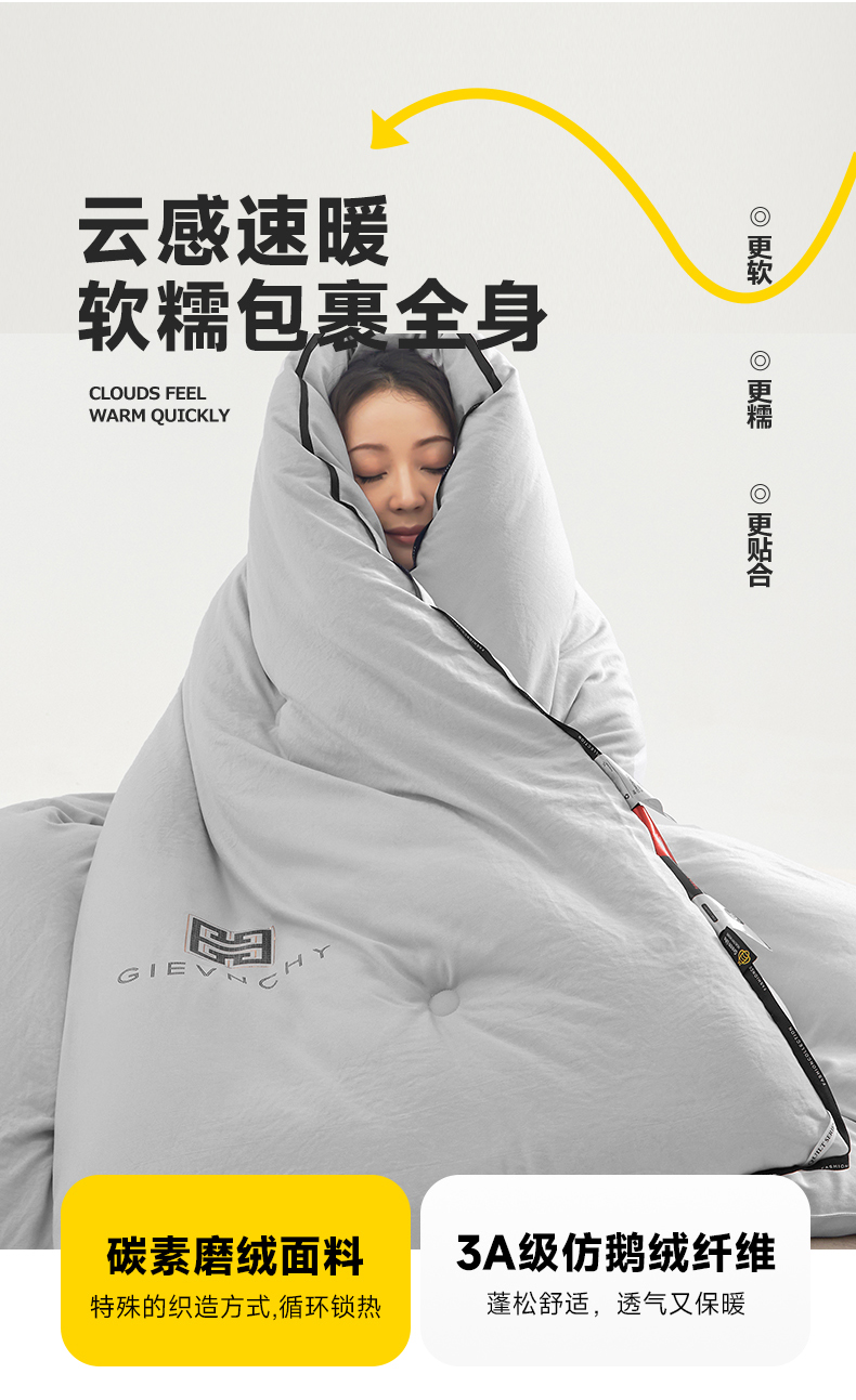 商品名称:2023新款暖芯碳素磨绒被 星灰