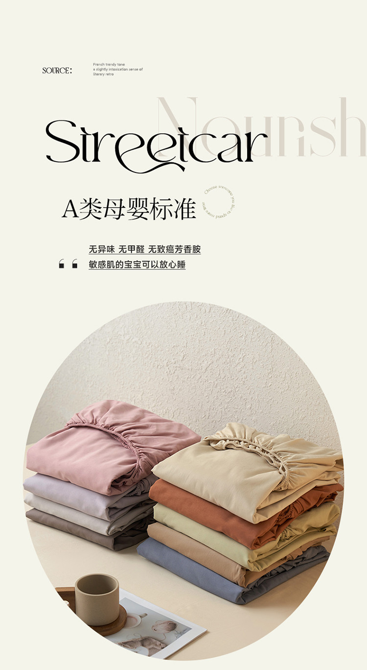 商品名称:简纯主义 2025新款100支纯色磨毛单品床笠 牛乳茶